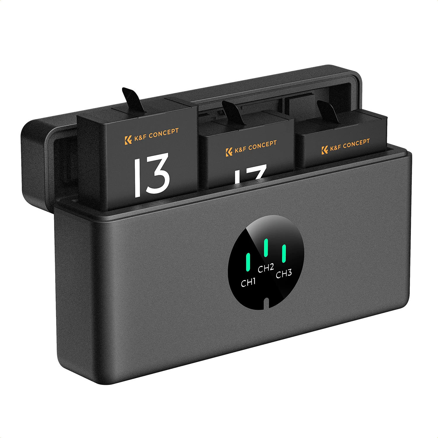 بطارية K&F Concept مكونة من 3 قطع لبطاريات إندورو هيرو 13 شاحن سريع مطور لفيديو كاميرا GoPro Hero 13 السوداء