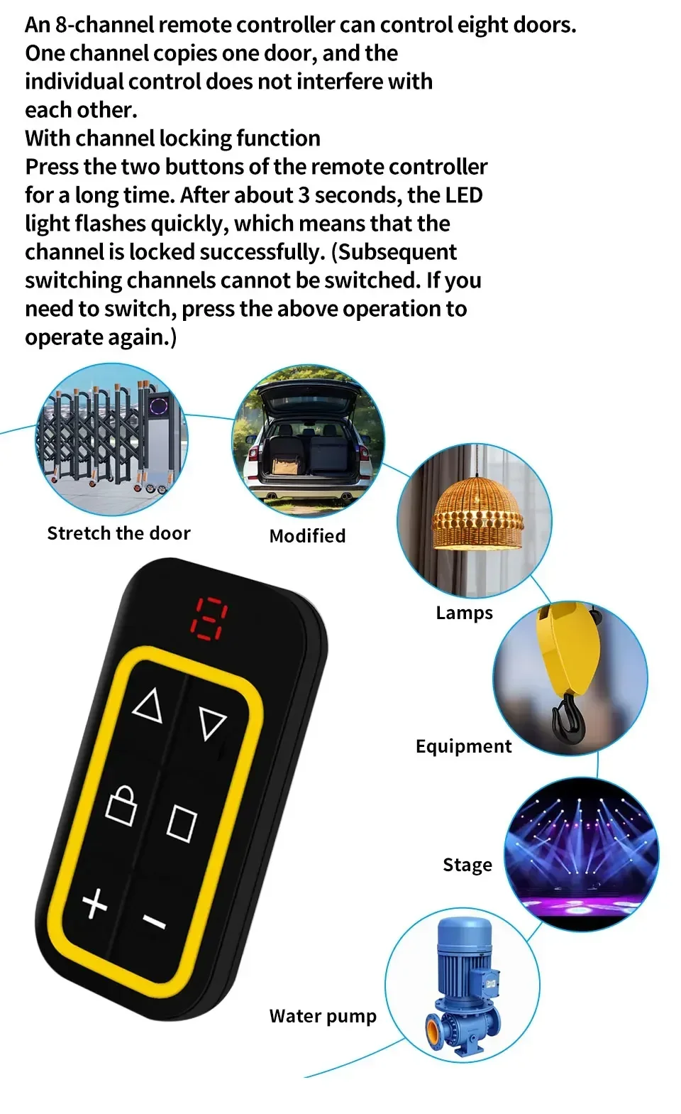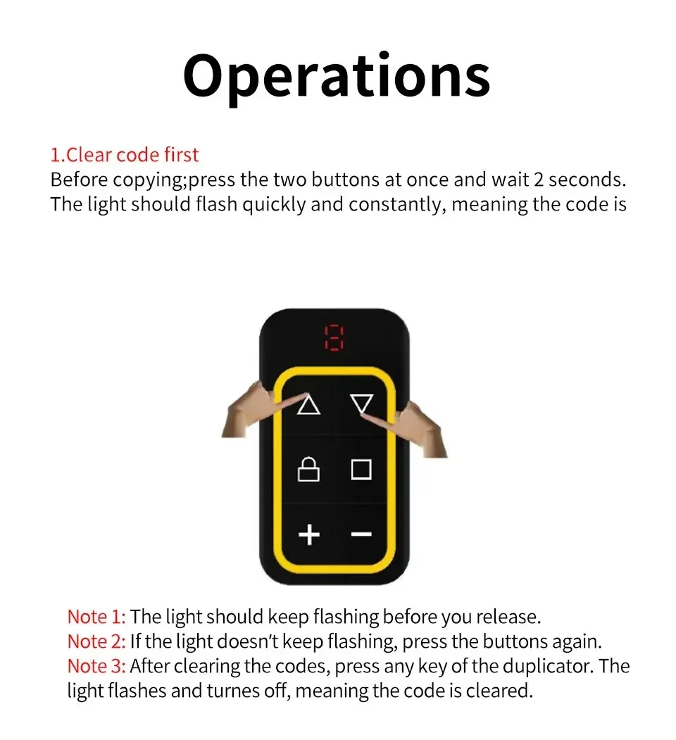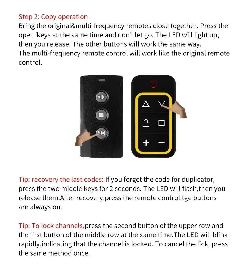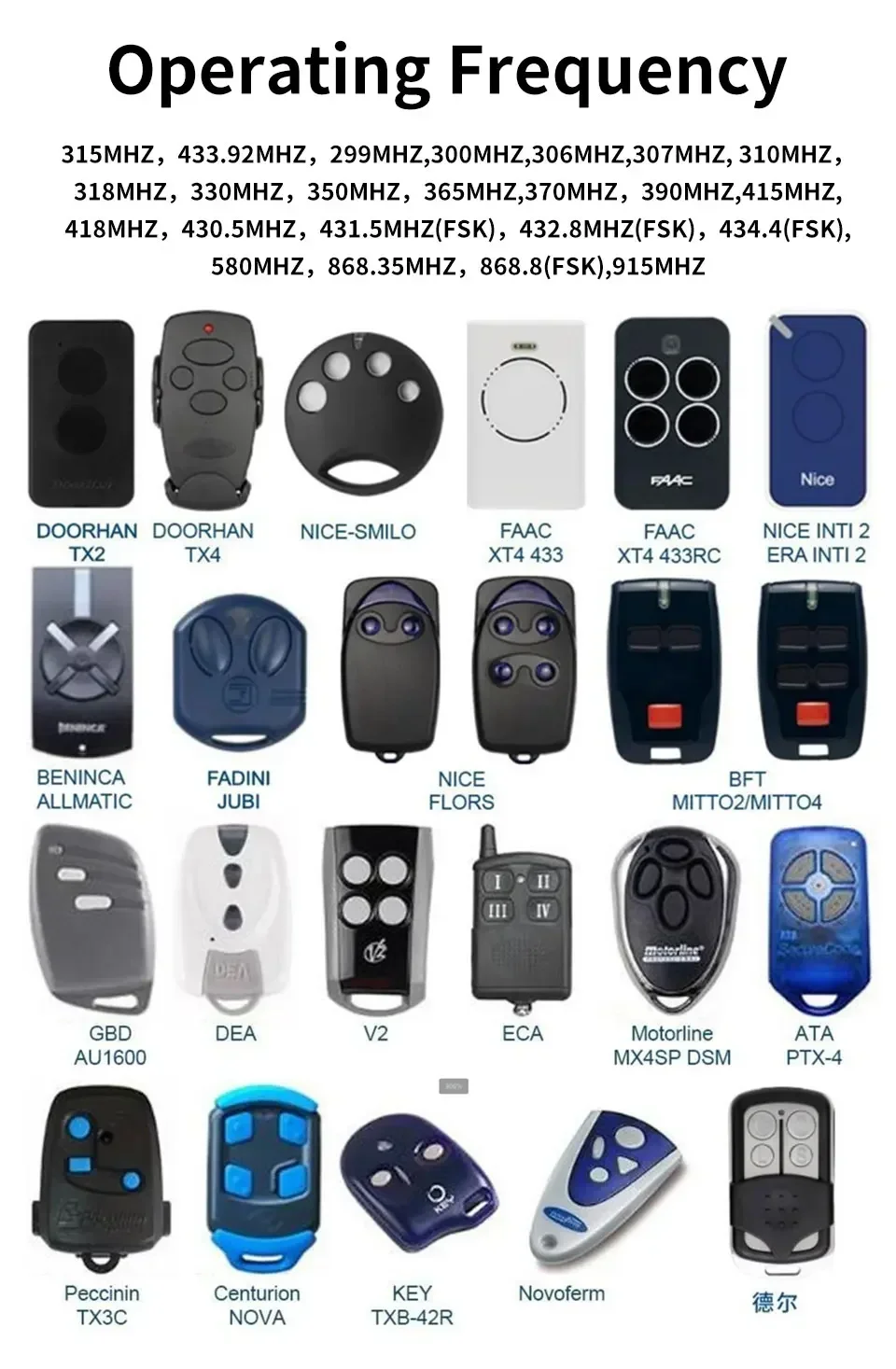 1.يمكن نسخ الرموز الثابتة الأكثر شيوعًا مثل 2262، ورموز التعلم مثل 1527 والرموز المتداولة مثل HC301، وبعض أجهزة التحكم عن بعد المشفرة غير القياسية.