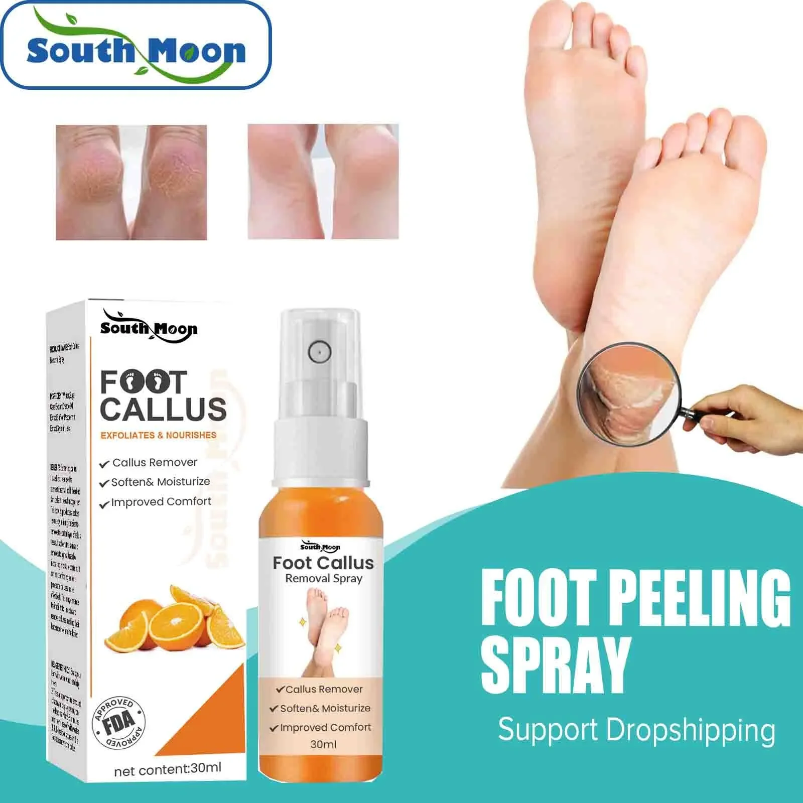 بخاخ تقشير للقدم من خلاصة البرتقال الطبيعية ، الجلد الميت ، مزيل النسيج ، مقشر ، مضاد للتجفيف ، الكراك ، التبييض ، سائل الإصلاح