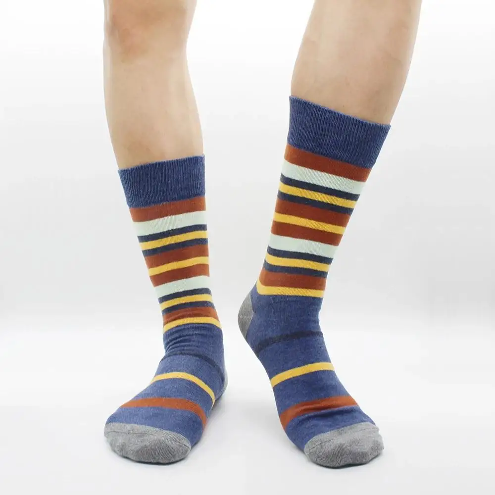 5 أزواج من الجوارب الرجالية المخططة مقاس كبير، جوارب دائرية من القطن الممشط عالي الجودة، جوارب كاجوال رائعة قابلة للتنفس للرجال