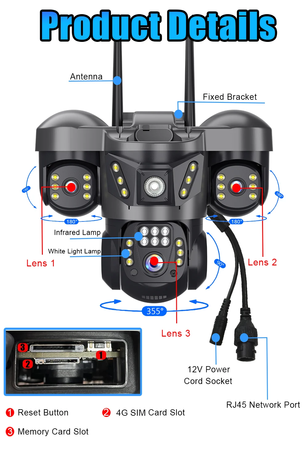 * الكاميرا الخاصة بنا: ثلاث كاميرات يتم التحكم فيها بشكل منفصل، بدون زوايا ميتة بزاوية 360 درجة، ويمكنك رؤية تفاصيل كل زاوية.
