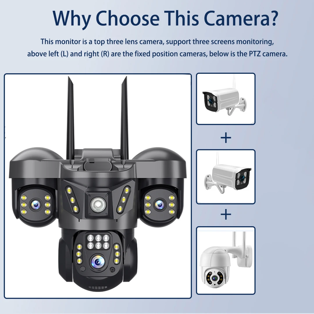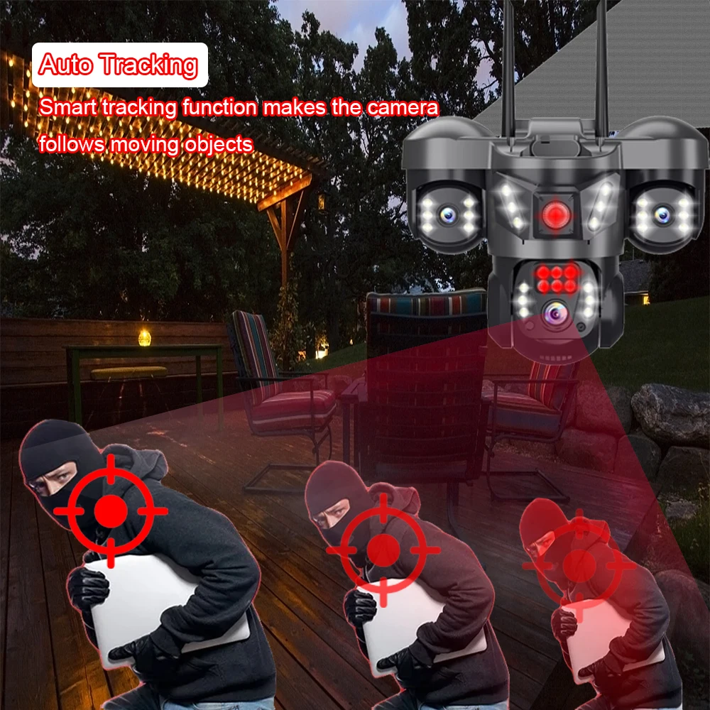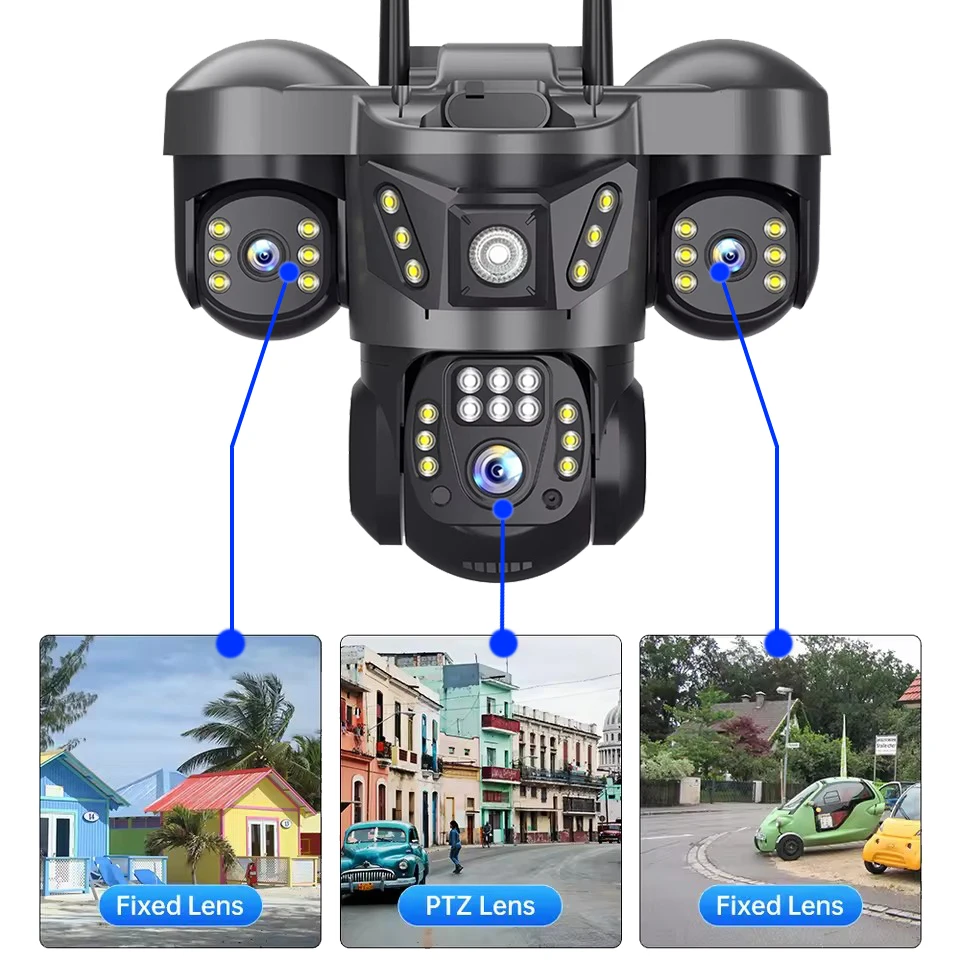 كاميرا 15 ميجابكسل 4G ثلاثية العدسات كاميرات IP 8K HD لمراقبة الفيديو الليلي إعداد الحركة 360 شاشة حماية المنزل الذكي CCTV