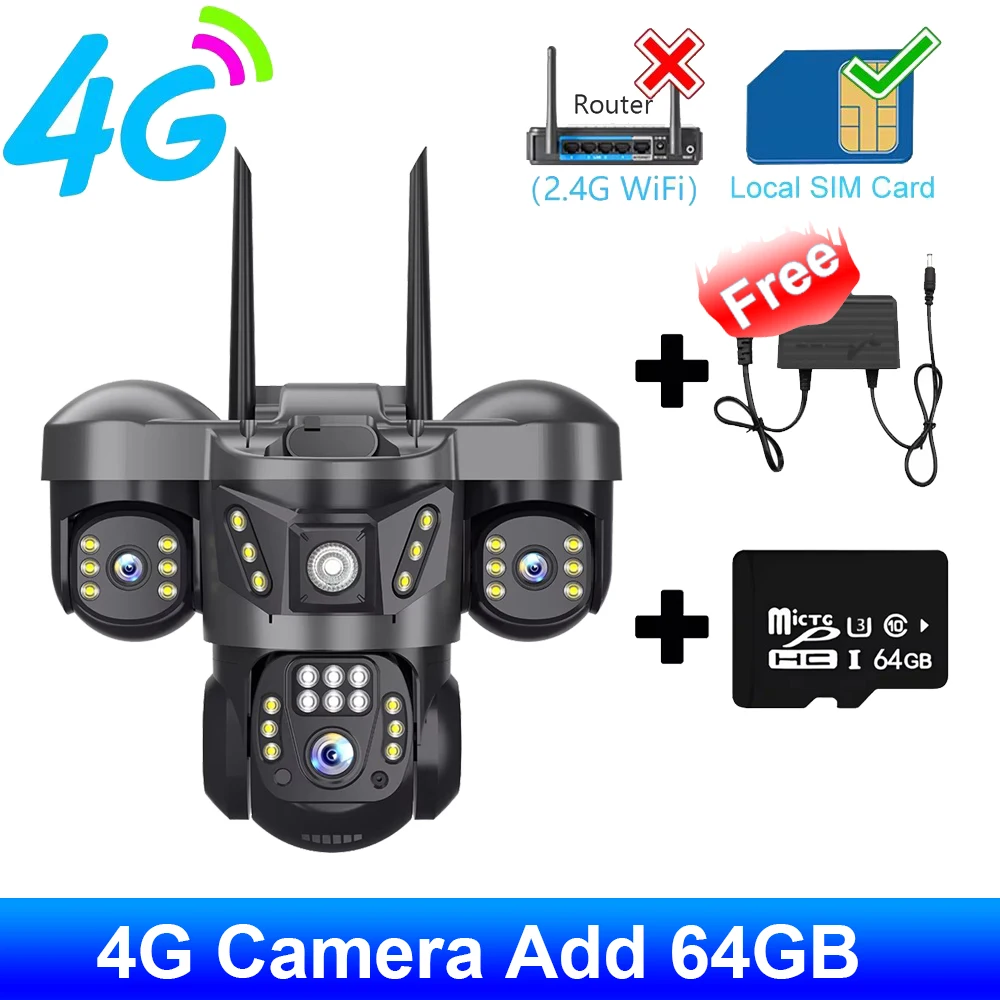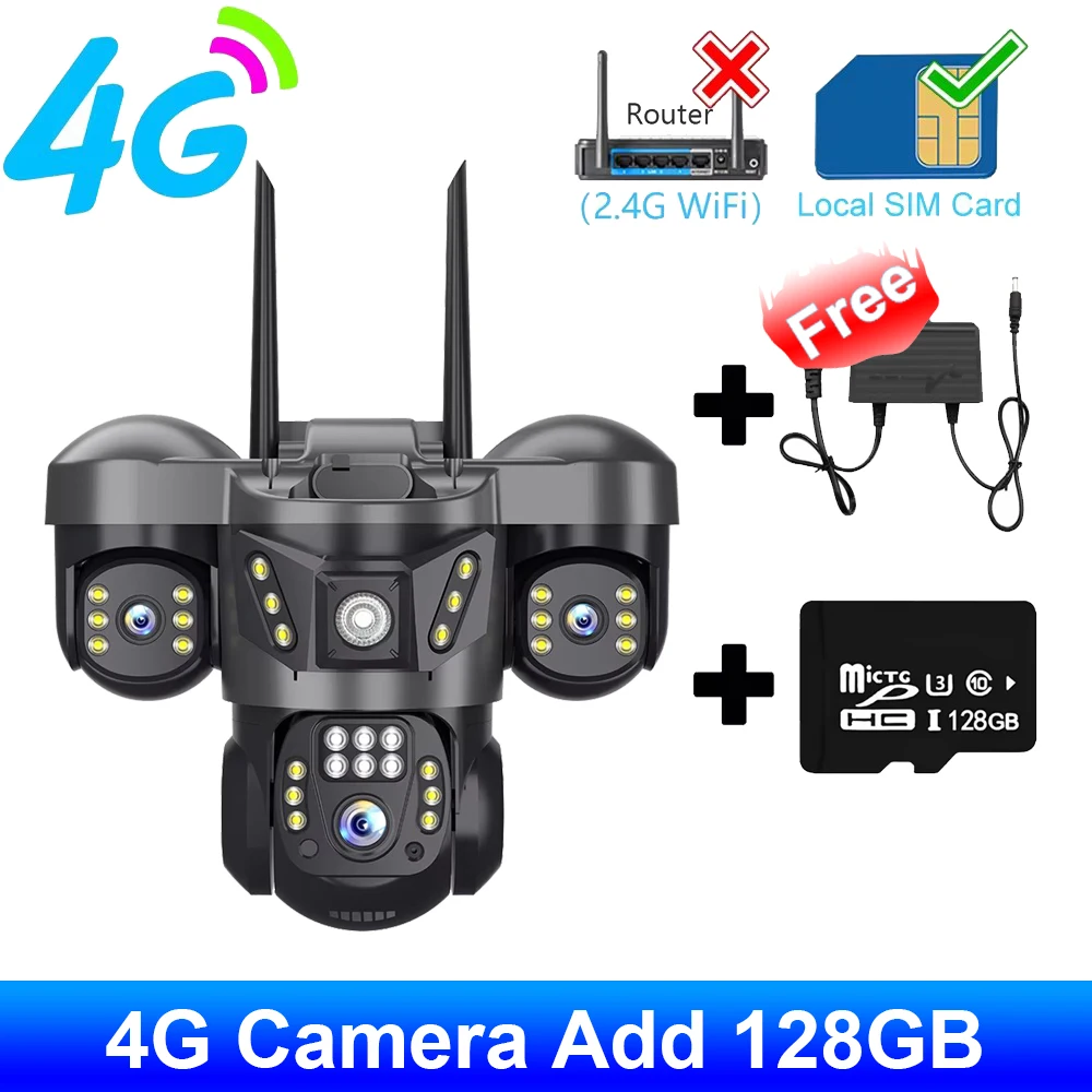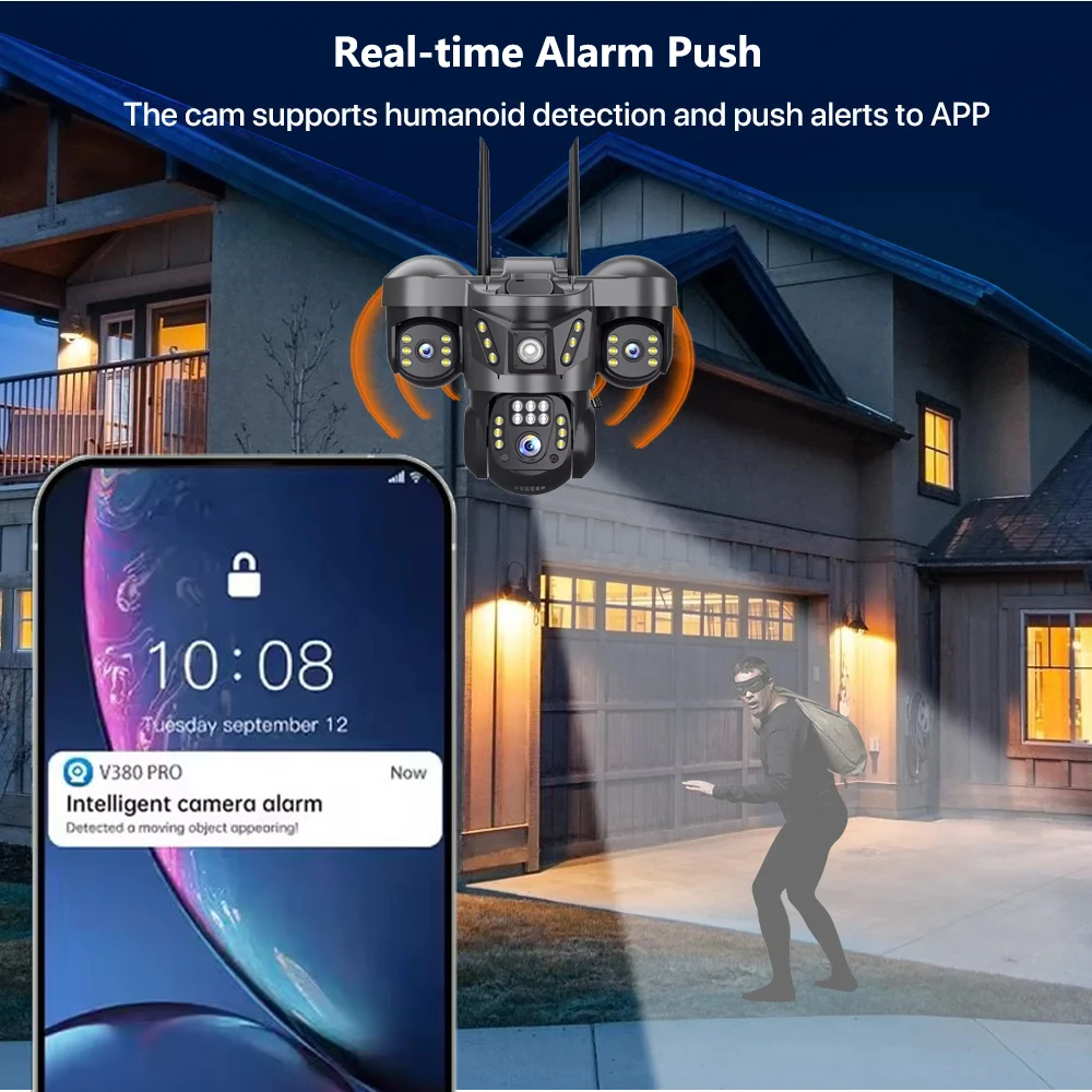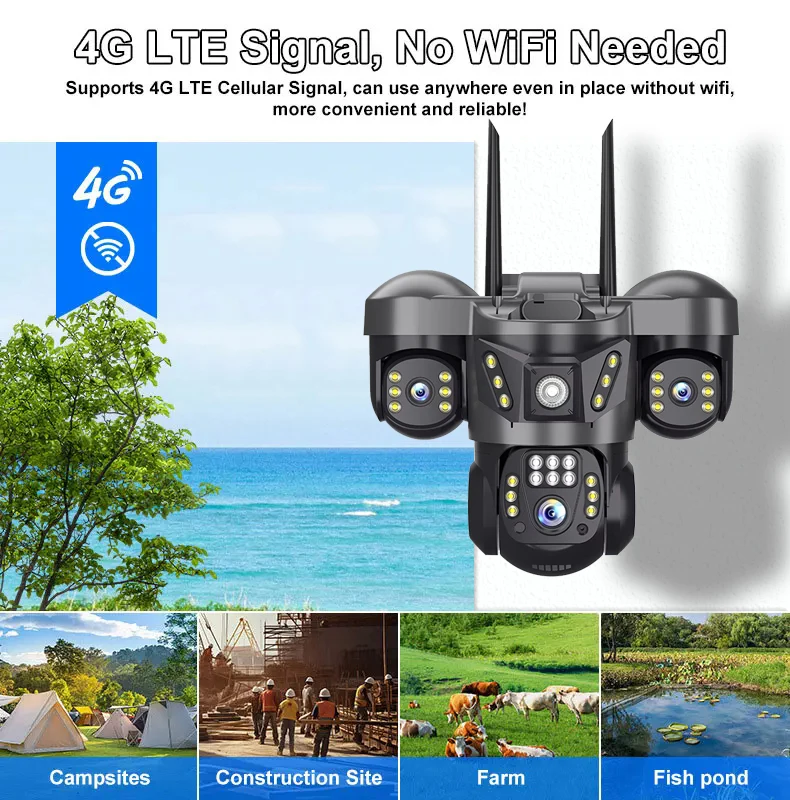 كاميرا 15 ميجابكسل 4G ثلاثية العدسات كاميرات IP 8K HD لمراقبة الفيديو الليلي إعداد الحركة 360 شاشة حماية المنزل الذكي CCTV