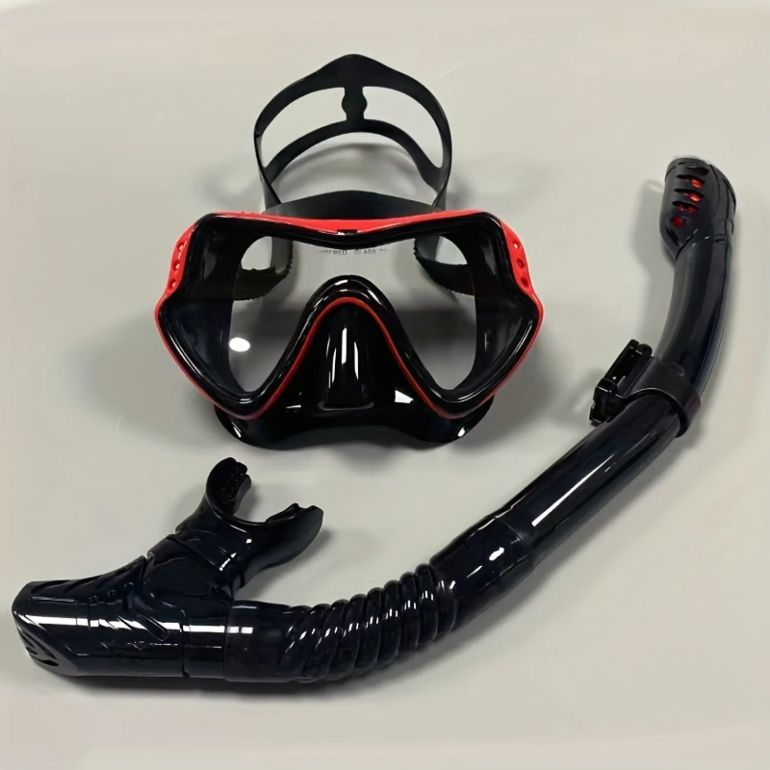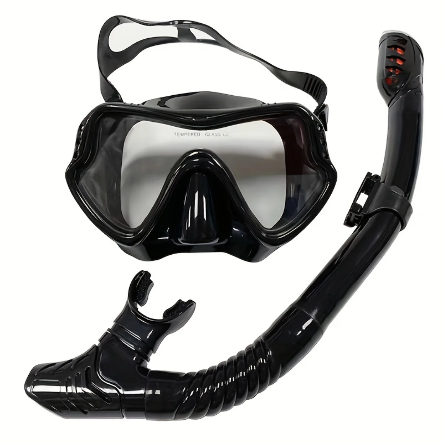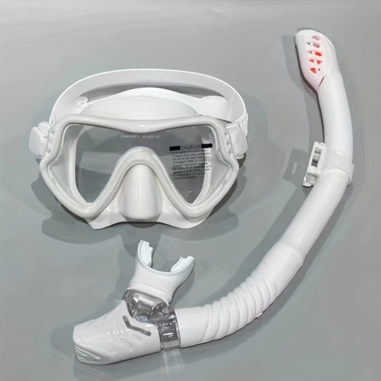 1. Discover the wonders of the underwater world with our Diving Mask Breathing Tube Set. Made with high-quality silicone and a clear tempered glass lens, this set provides a comfortable and leak-proof fit for all your snorkeling and diving adventures.
