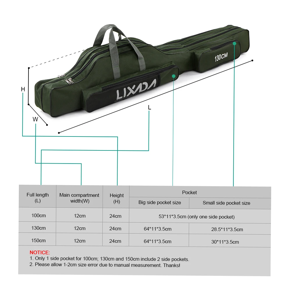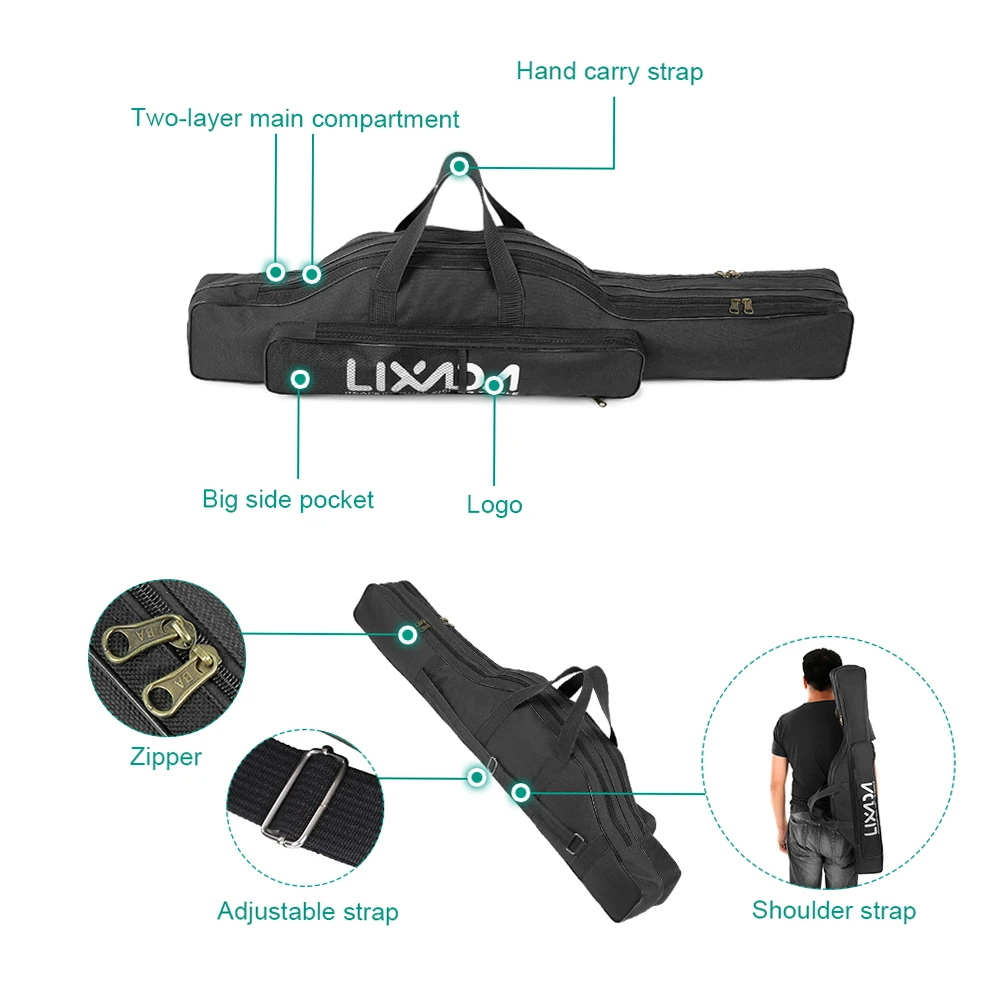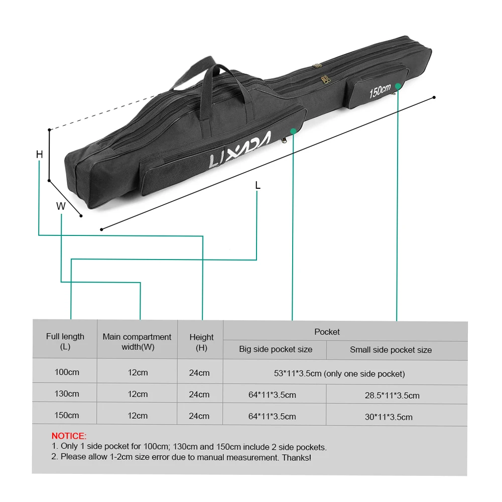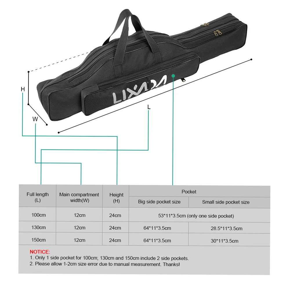 100 سنتيمتر/130 سنتيمتر/150 سنتيمتر حقيبة الصيد المحمولة للطي الصيد رود بكرة حقيبة قصبة صيد خشبية والعتاد معالجة أداة حمل الناقل حقيبة سفر