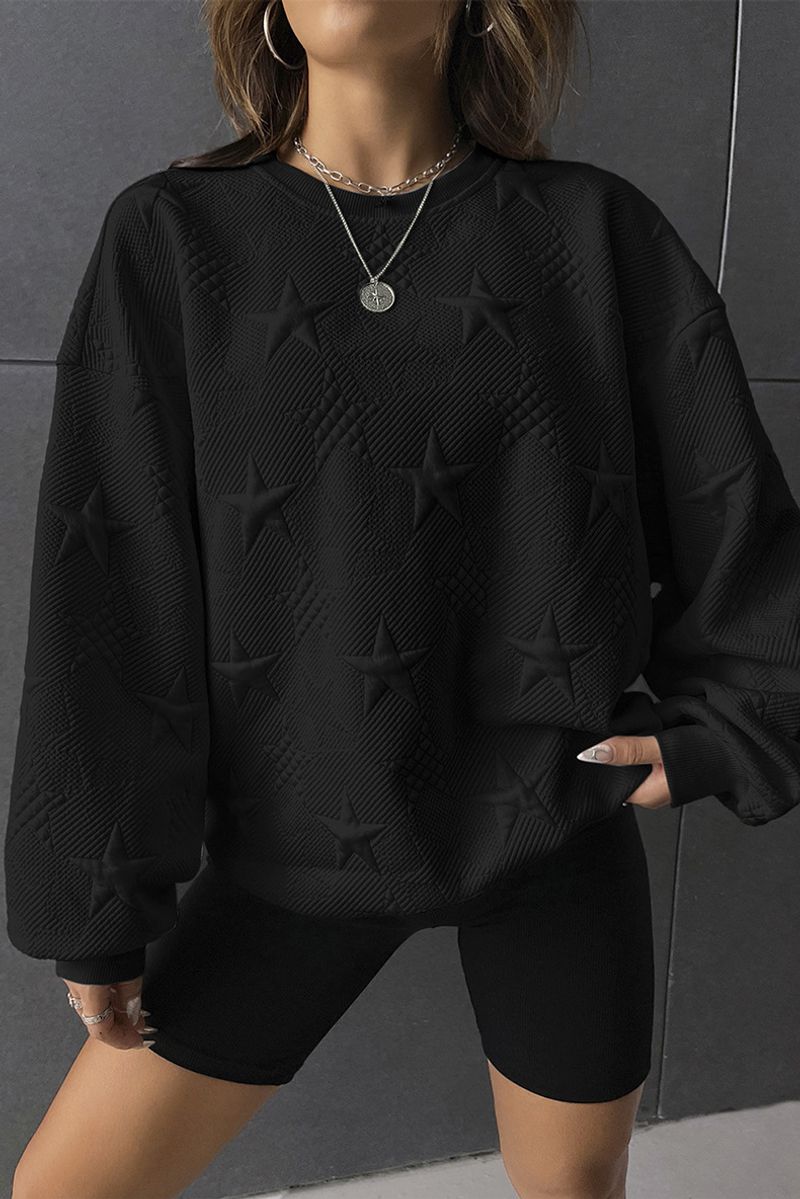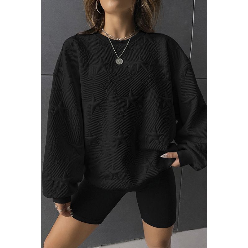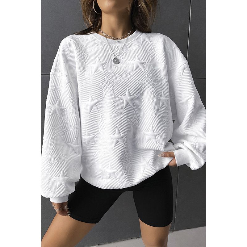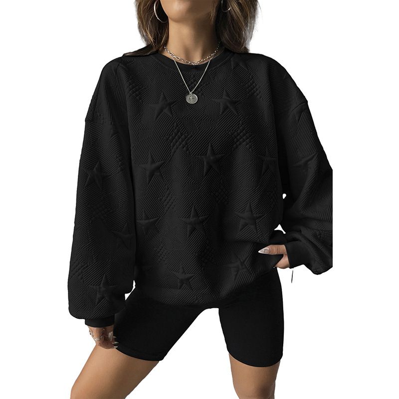 قميص رياضي نسائي ذو طوق دائري، فضفاض، عشوائي، نجمة مطرزة، بدون أكتاف، بلون طويل