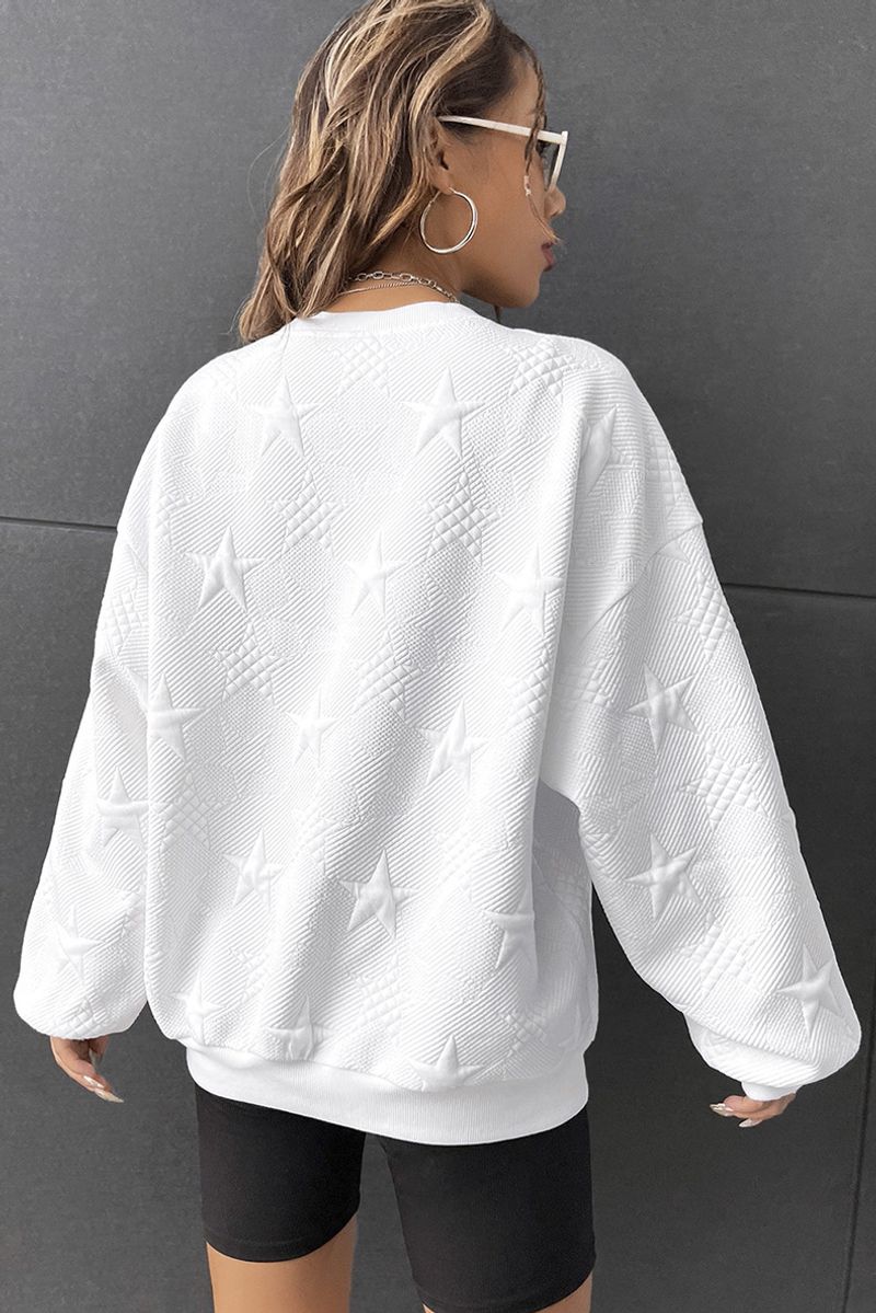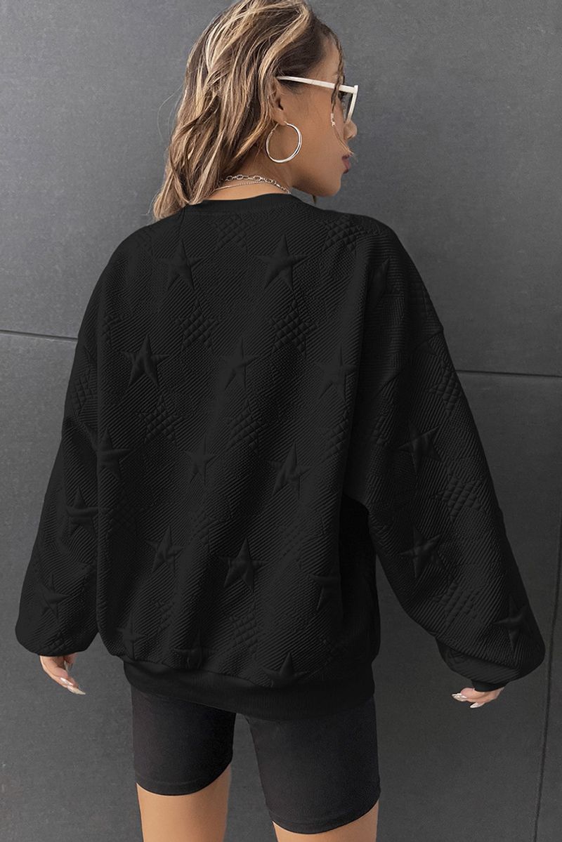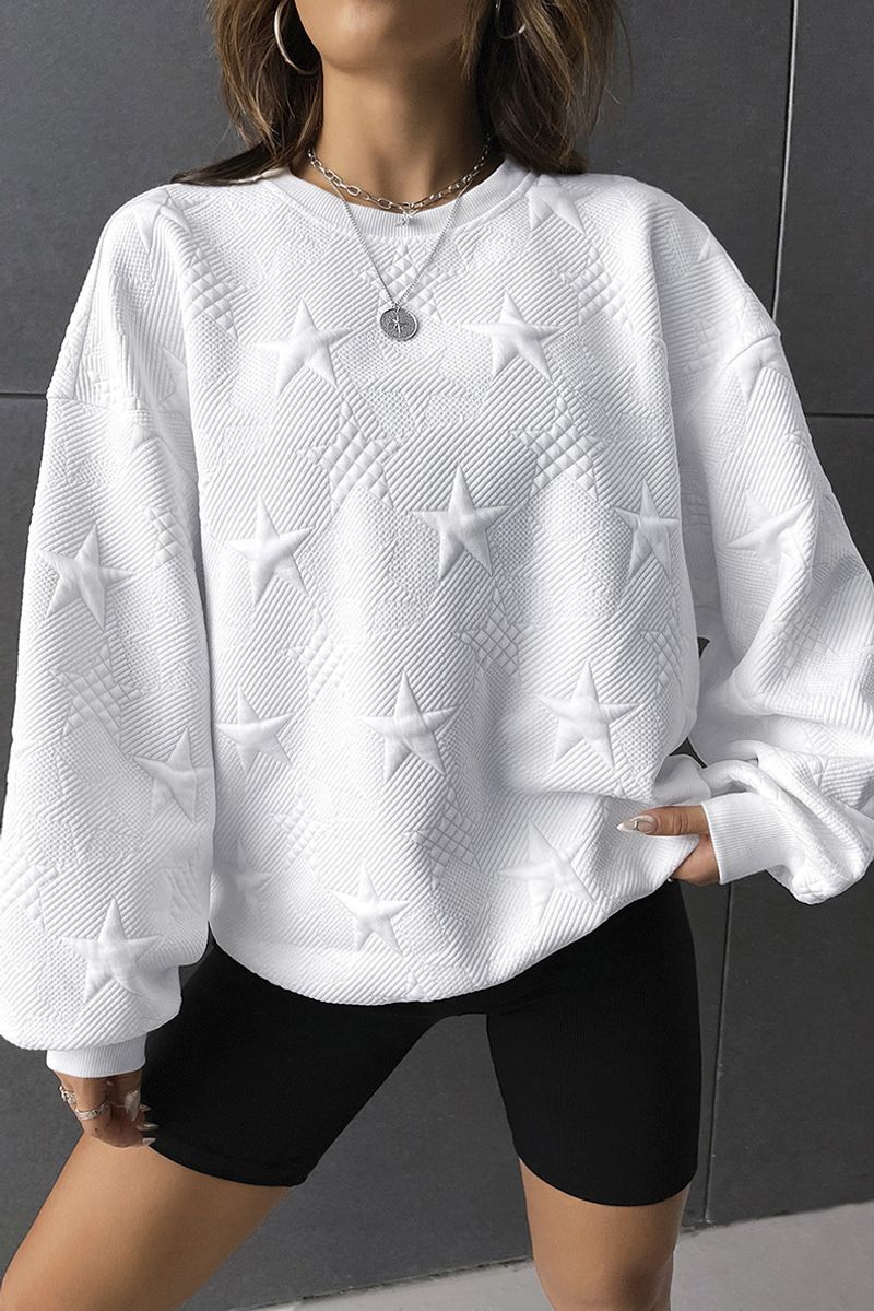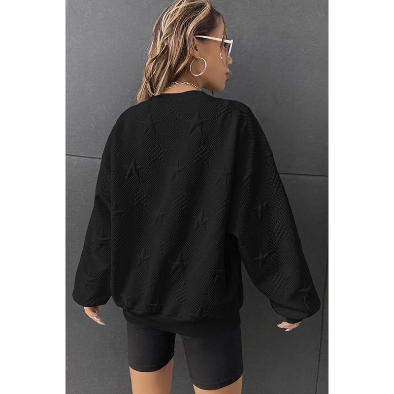 قميص رياضي نسائي ذو طوق دائري، فضفاض، عشوائي، نجمة مطرزة، بدون أكتاف، بلون طويل