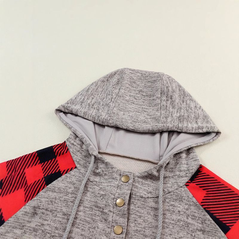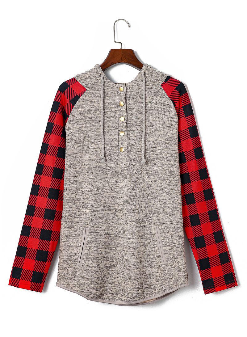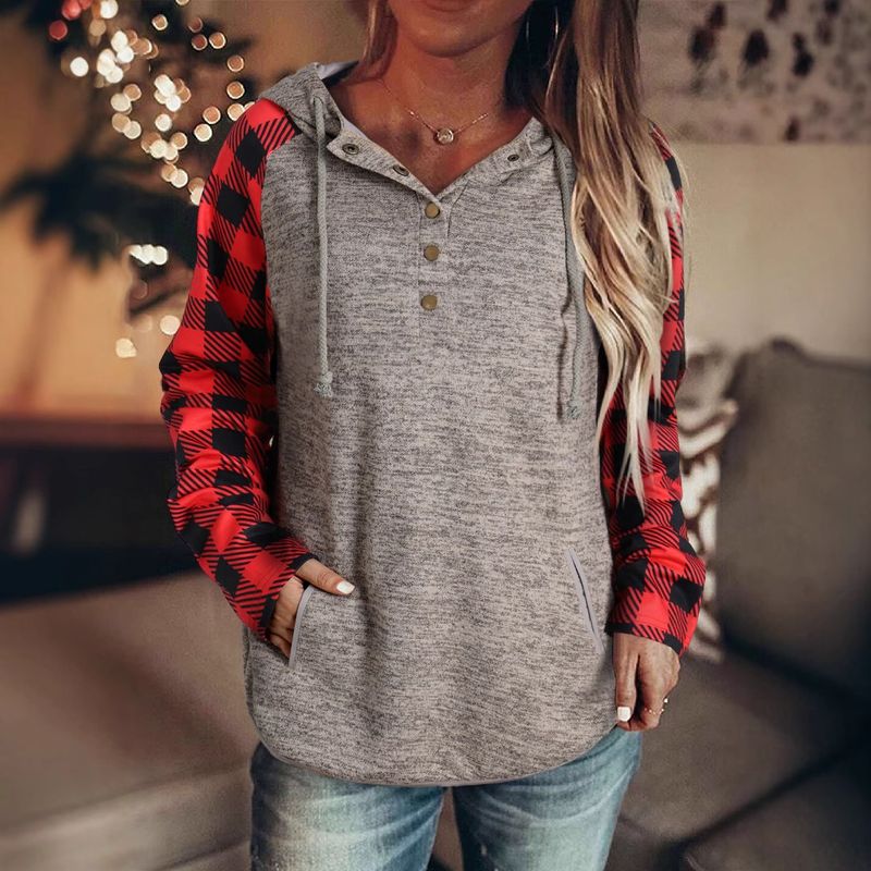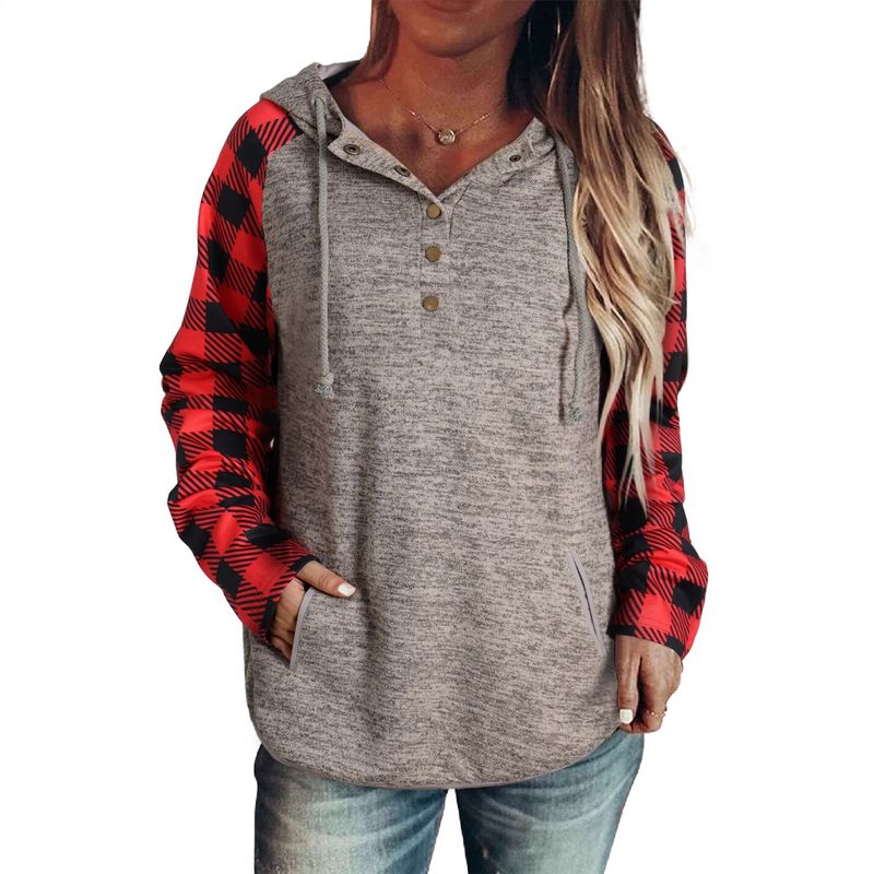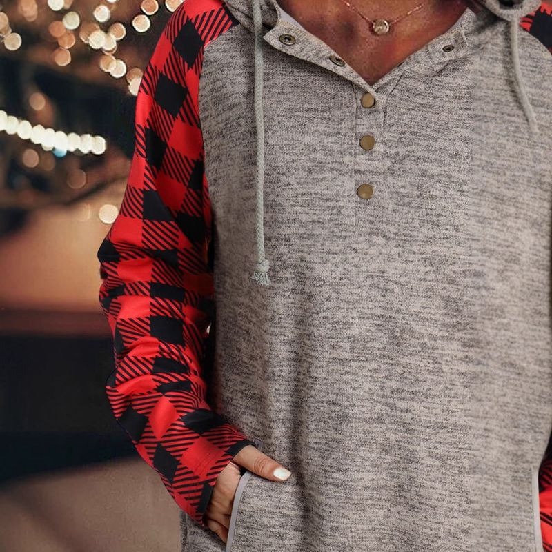 شويينغ خريف وشتاء بلوزة هودي طويلة الأكمام بنمط شبكي جديد للنساء، كاجوال مع طبقة مربعة تباين أزرار