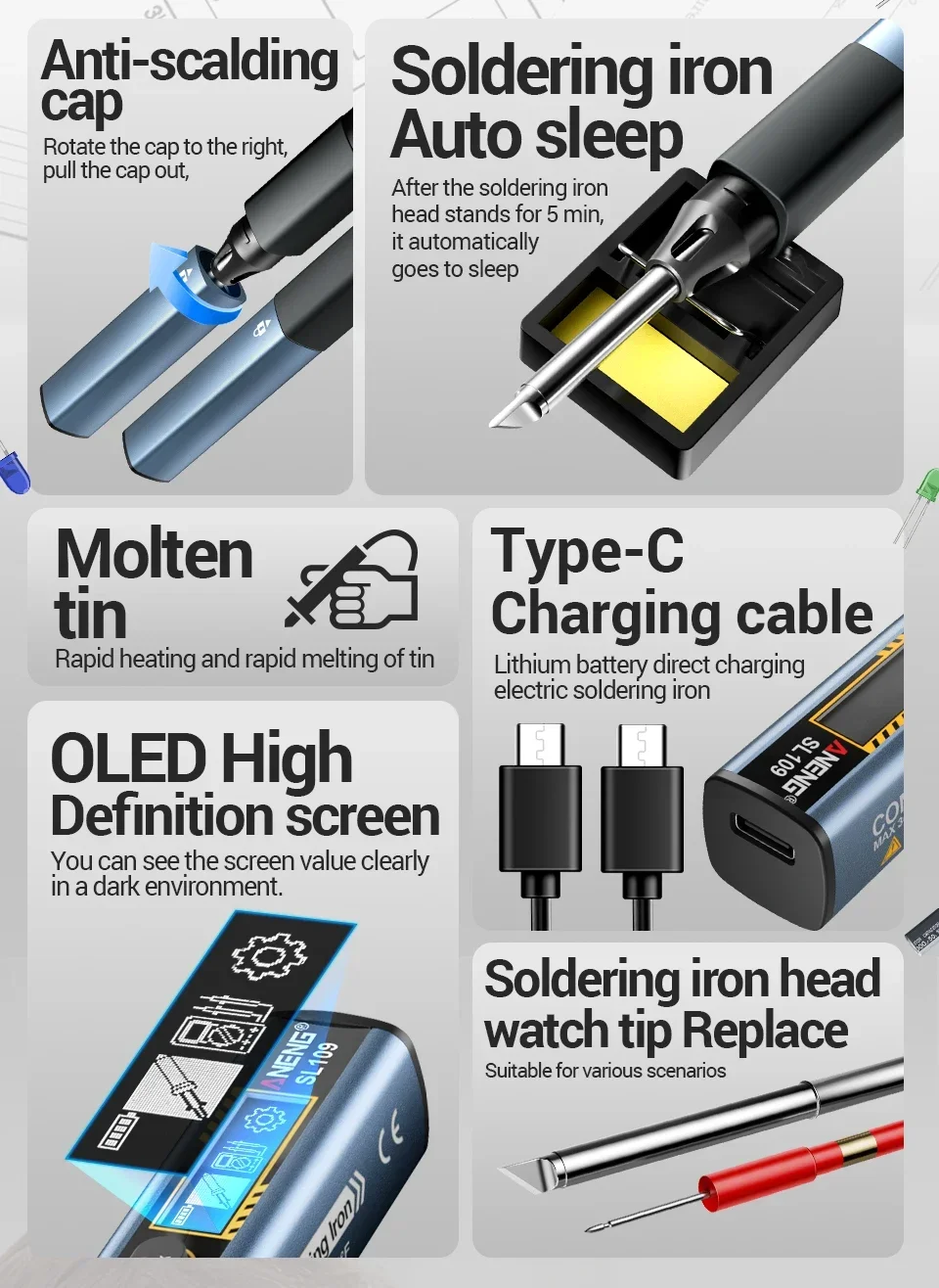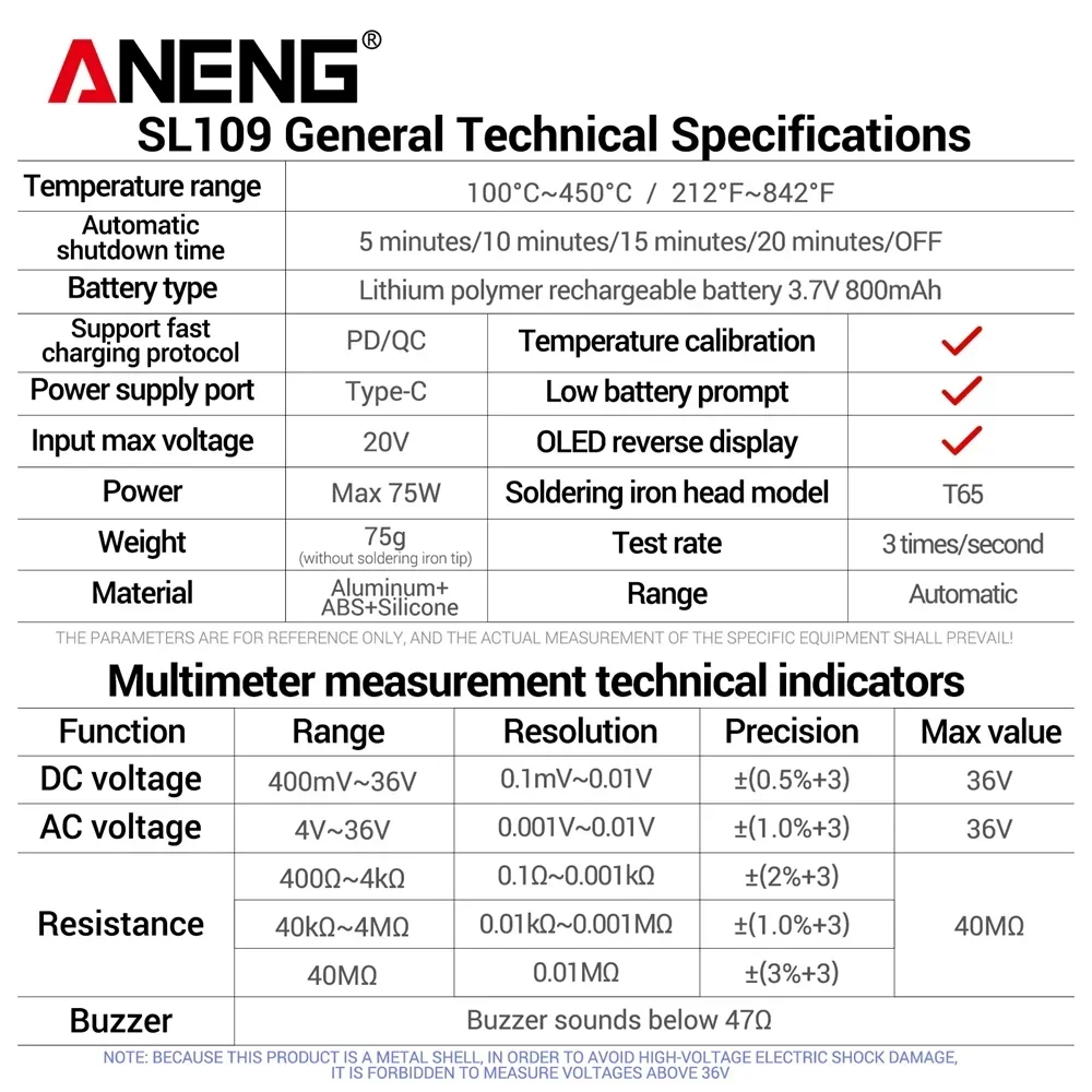 ANENG SL109 مكاوي لحام ذكية 75 واط التيار المتناوب الجهد أوم قابل للتعديل درجة الحرارة لحام لحام قلم رصاص تلميح أداة الاختبار