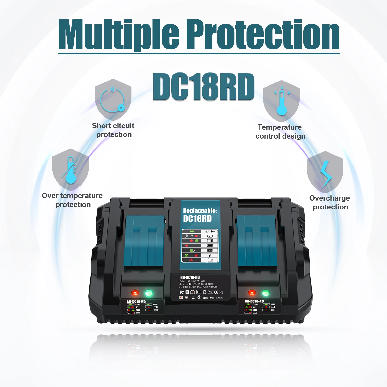 تيار الشحن 6 أمبير، نطاق الإخراج 14.4 فولت-18 فولت.