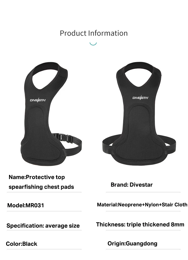 *واقي الصدر*: مادة غوص سميكة مقاومة للاهتراء + وسادة صدر من قطن EVA مقاس 8 مم، بالتعاون مع معدات الصيد، إنها مثالية لحماية صدرك من الأذى والثقب والخدش. تجعلك تشعر بسهولة غوص سمك الرمح، وتتمتع بالسلامة تحت الماء.