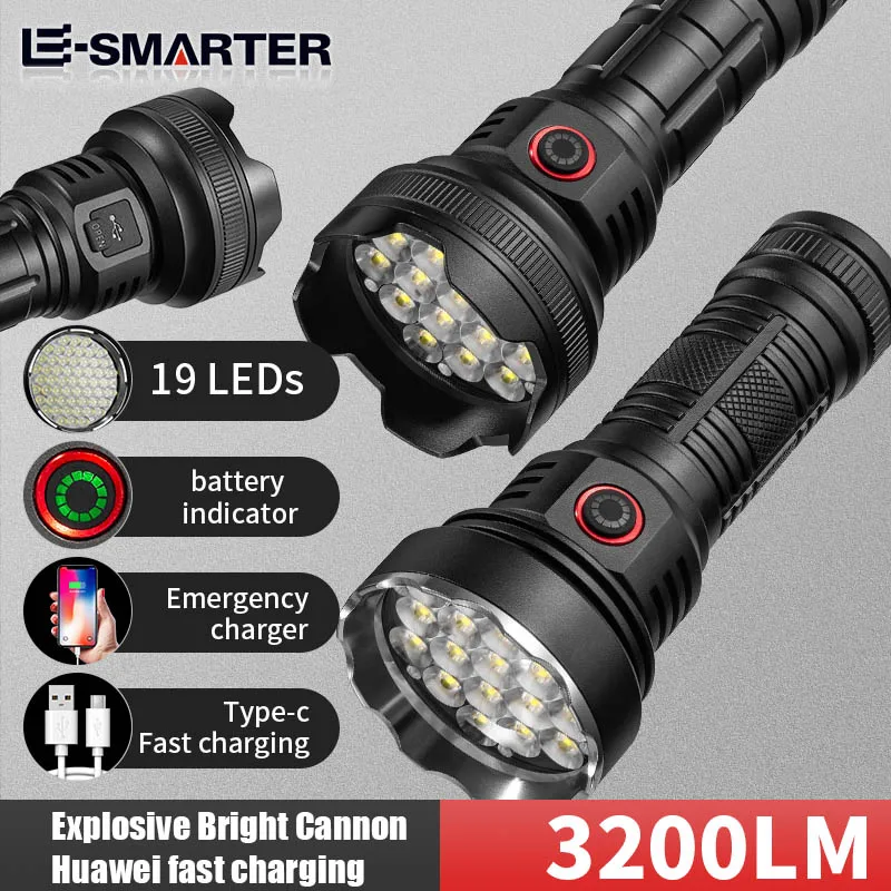 قابلة للشحن التكتيكية مصباح يدوي 19LED 3200Lm EDC الشعلة 5 طرق الإضاءة في الهواء الطلق التخييم الصيد الصيد السوبر مشرق مصباح يدوي