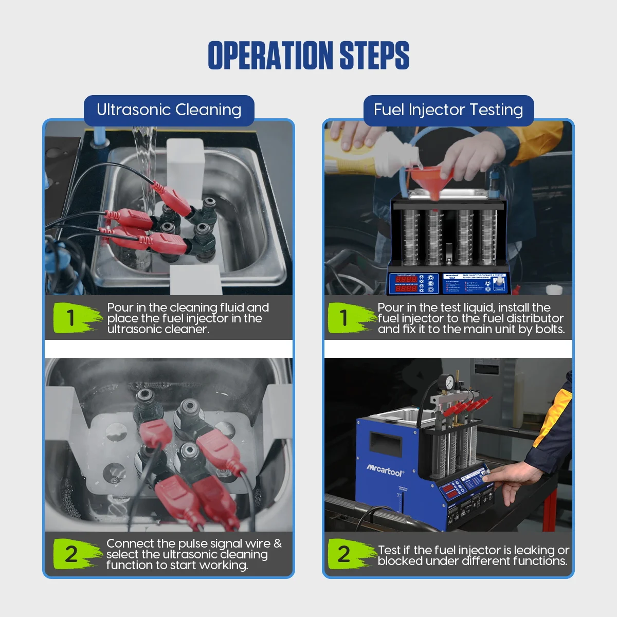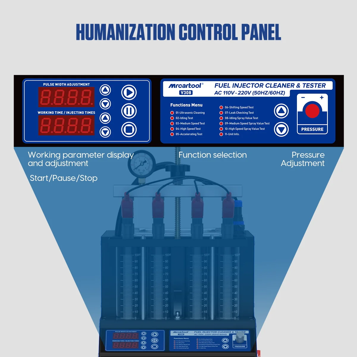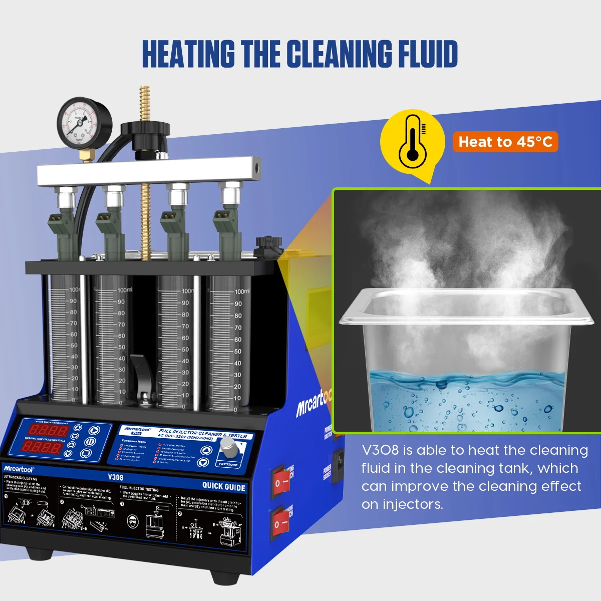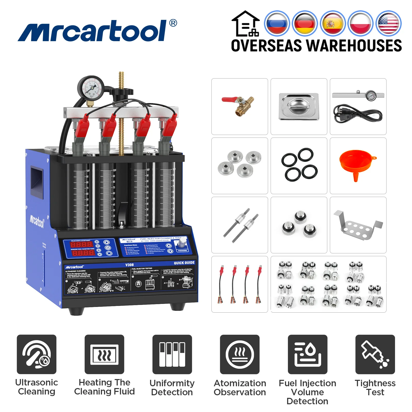 MRCARTOOL V308 سيارة حاقن الوقود تستر بالموجات فوق الصوتية تنظيف التدفئة تنظيف سائل حجم كشف ضيق اختبار دراجة نارية