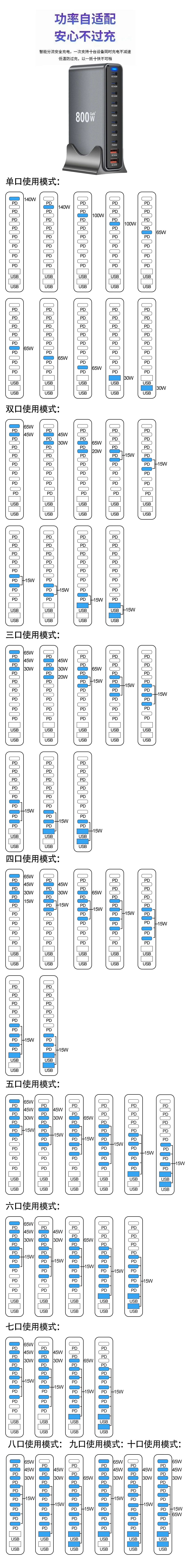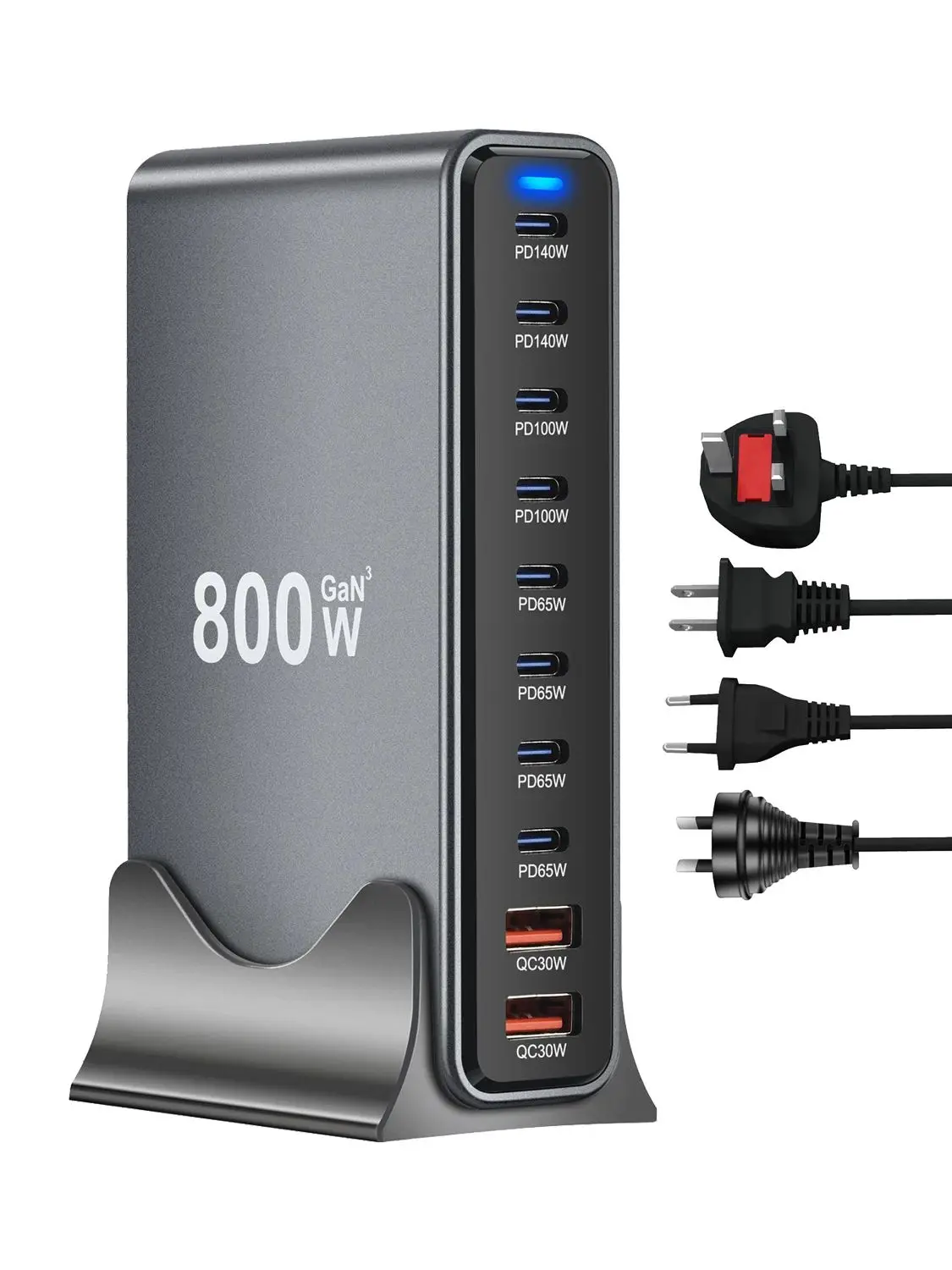 شاحن GaN بقدرة 800 وات، 10 منافذ USB C PD3.1، محطة شحن سريعة لهاتف iPhone 16/15 Samsung MacBook