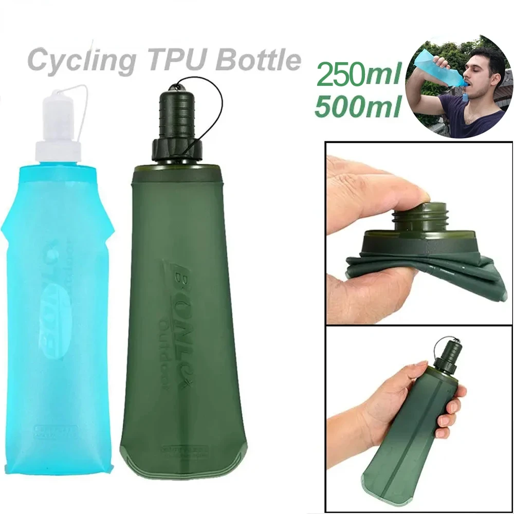 250/500 مللي بولي يوريثان زجاجة رياضية خارجية قابلة للطي قارورة ناعمة شرب زجاجة ماء لتشغيل التخييم التنزه دراجة اللياقة البدنية حقيبة المياه