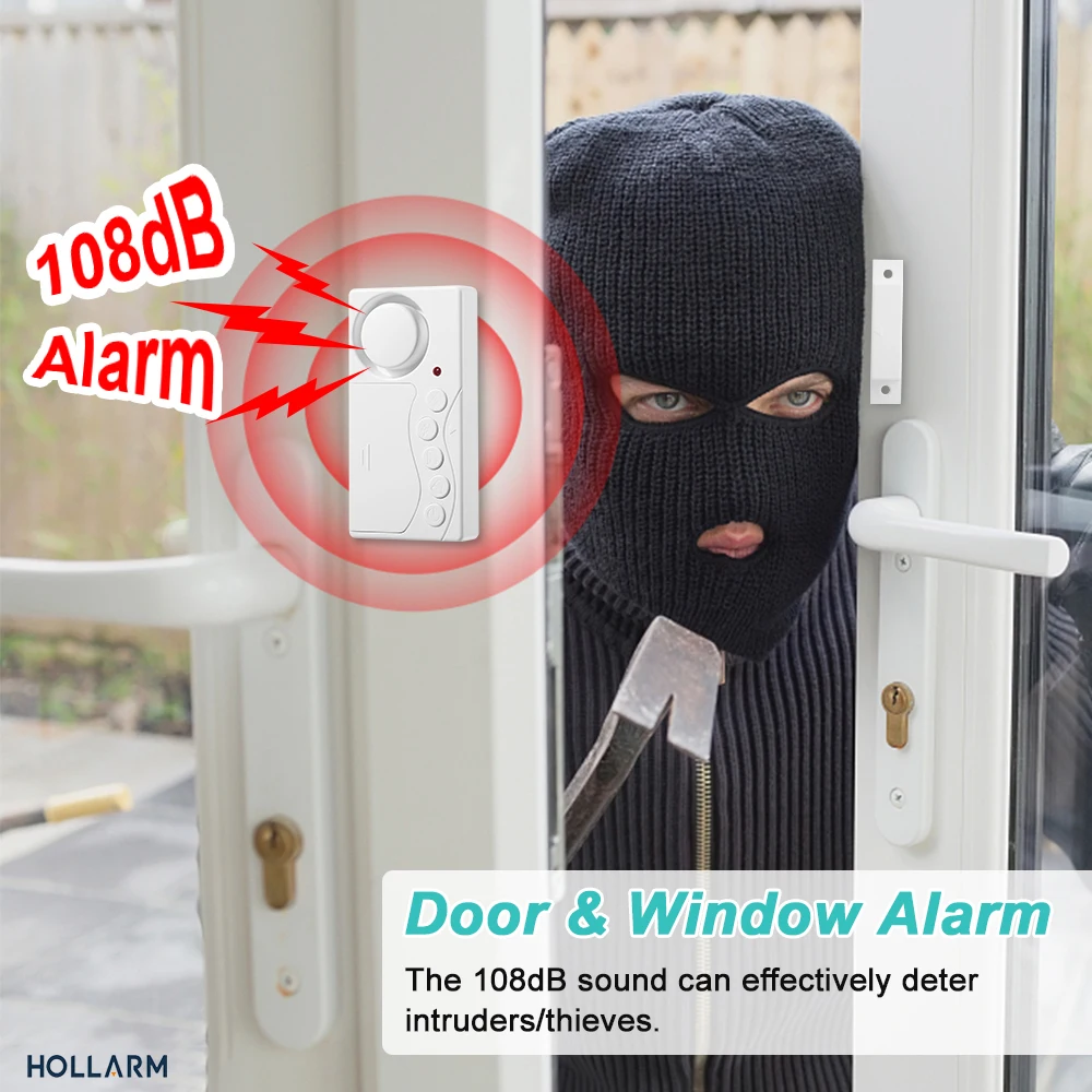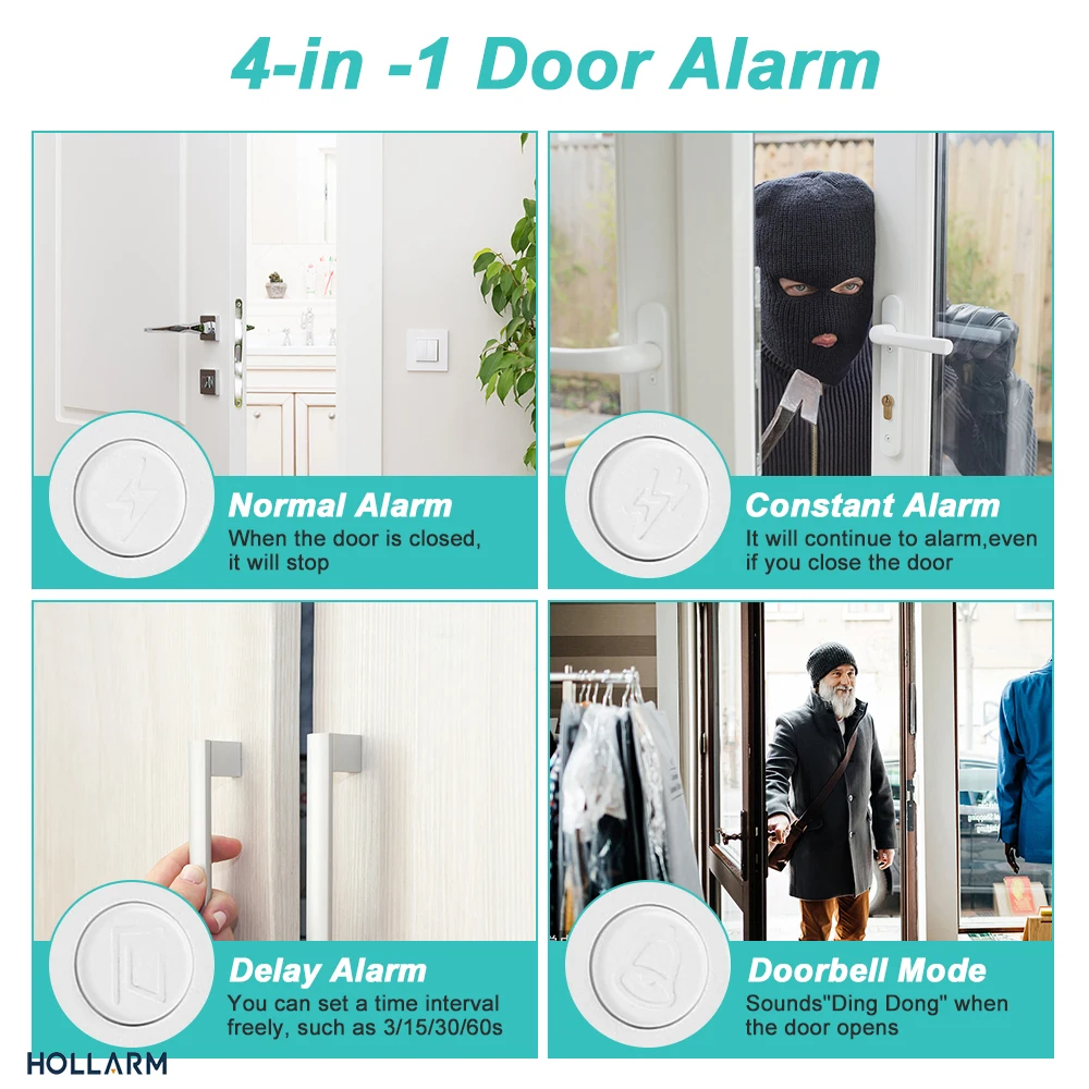 Hollarm مستشعر فتح الباب لاسلكي تأخير الوقت إنذار الباب مكافحة سرقة نافذة الباب إنذار أمان الثلاجة إنذار مستشعر الباب