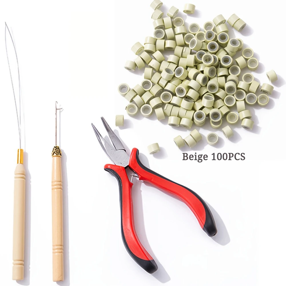 مجموعة أدوات وصلات الشعر I-tip كماشة تمديد الشعر سحب هوك حبة جهاز أدوات و 100 قطعة 5 مللي متر وصلات صغيرة خواتم الخرز