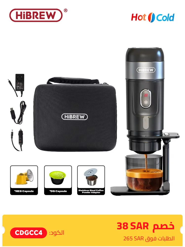 ماكينة صنع القهوة المحمولة HiBREW للسيارة والمنزل، ماكينة صنع قهوة اسبريسو DC12V تناسب Nexpresso Dolce Pod كبسولة مسحوق القهوة H4A