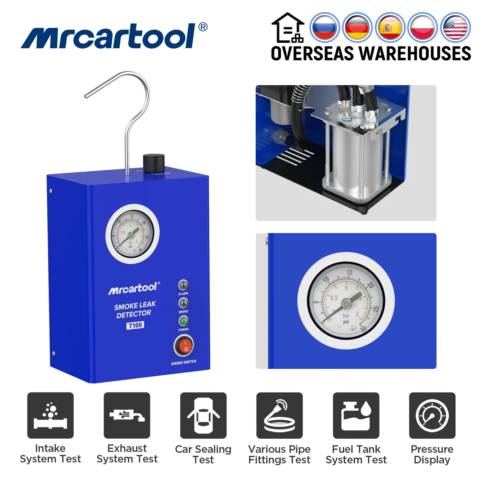 كاشف تسرب دخان السيارة MR CARTOOL T100 هو كاشف محترف يمكنه إجراء كشف شامل للتسرب على خطوط أنابيب السيارات.إنه سهل الاستخدام ويعمل بلا عيوب.إنها أداة ممتازة لتحديد موقع وإصلاح الأنابيب مثل مدخل السيارة والعادم وتسرب الانبعاثات، كما أنها أكثر فائدة لصيانة سيارتك، مما يجعلها أكثر صحة وتحسين أمان القيادة.
