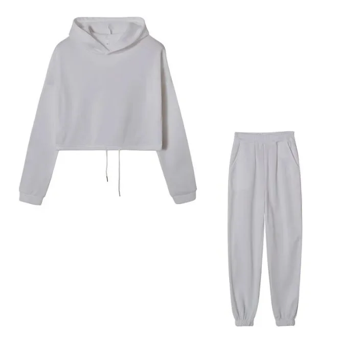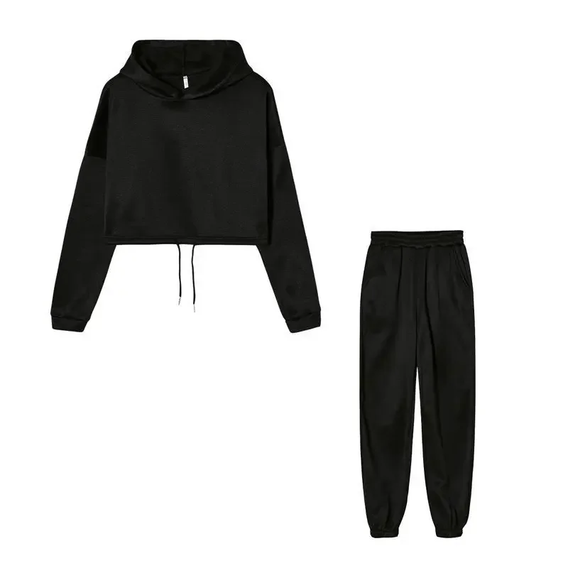 خريف شتاء مقنعين البلوز قصيرة بنطلون مجموعة عالية الخصر حجم كبير موضة جديدة غير رسمية قطعتين دعوى ألياف البوليستر