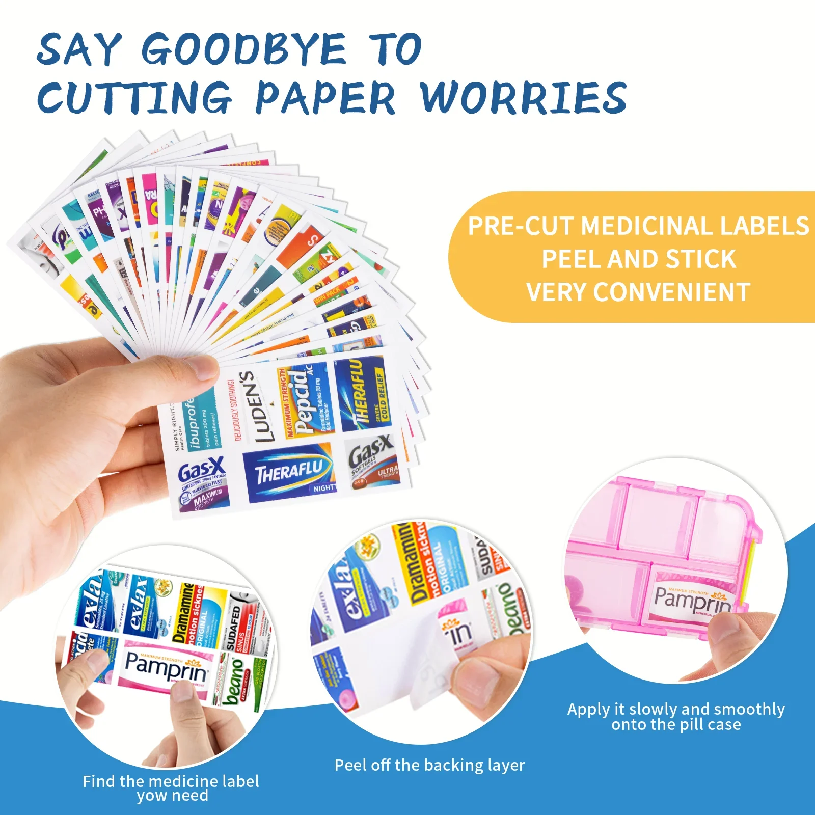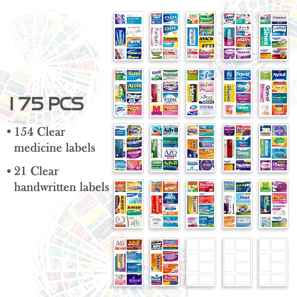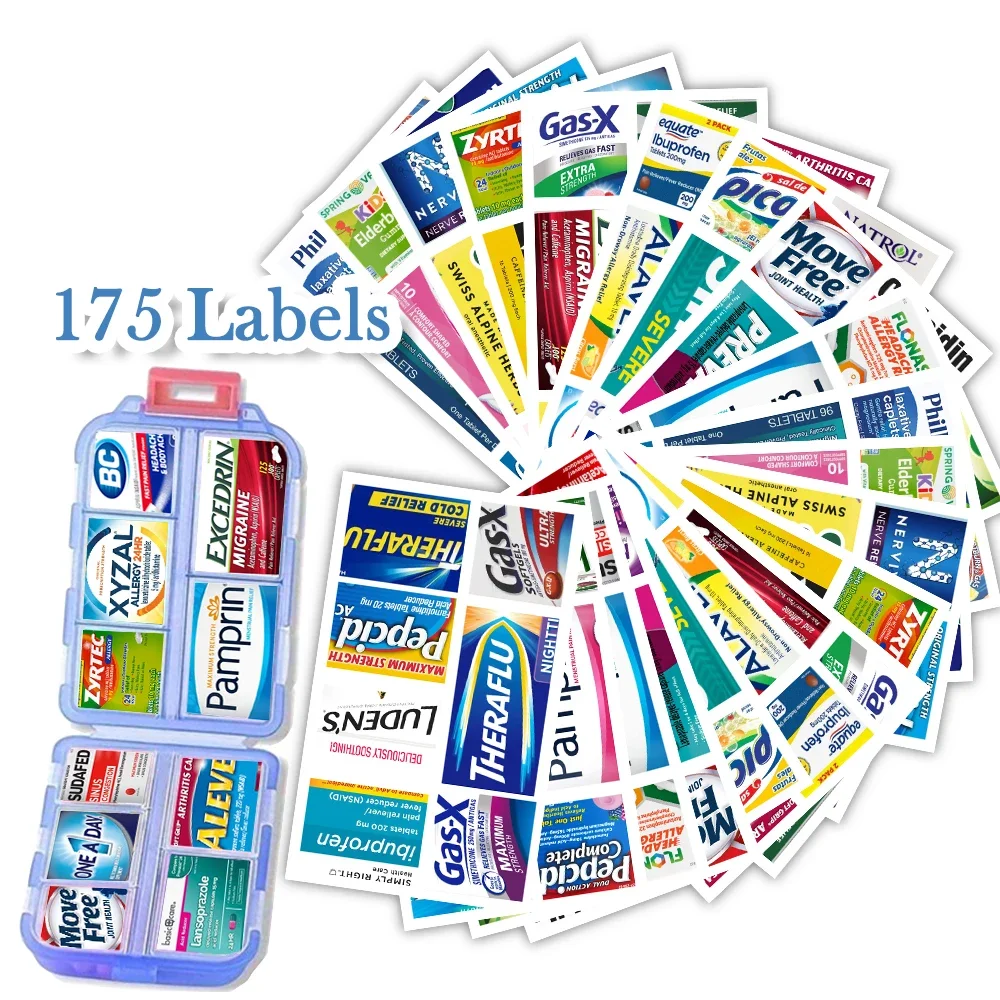 10 شبكات لتنظيم حبوب منع الحمل مع 175 ملصقًا علبة حبوب منع الحمل منظم الأدوية الصحية مستلزمات السفر صندوق حبوب صغير من البلاستيك