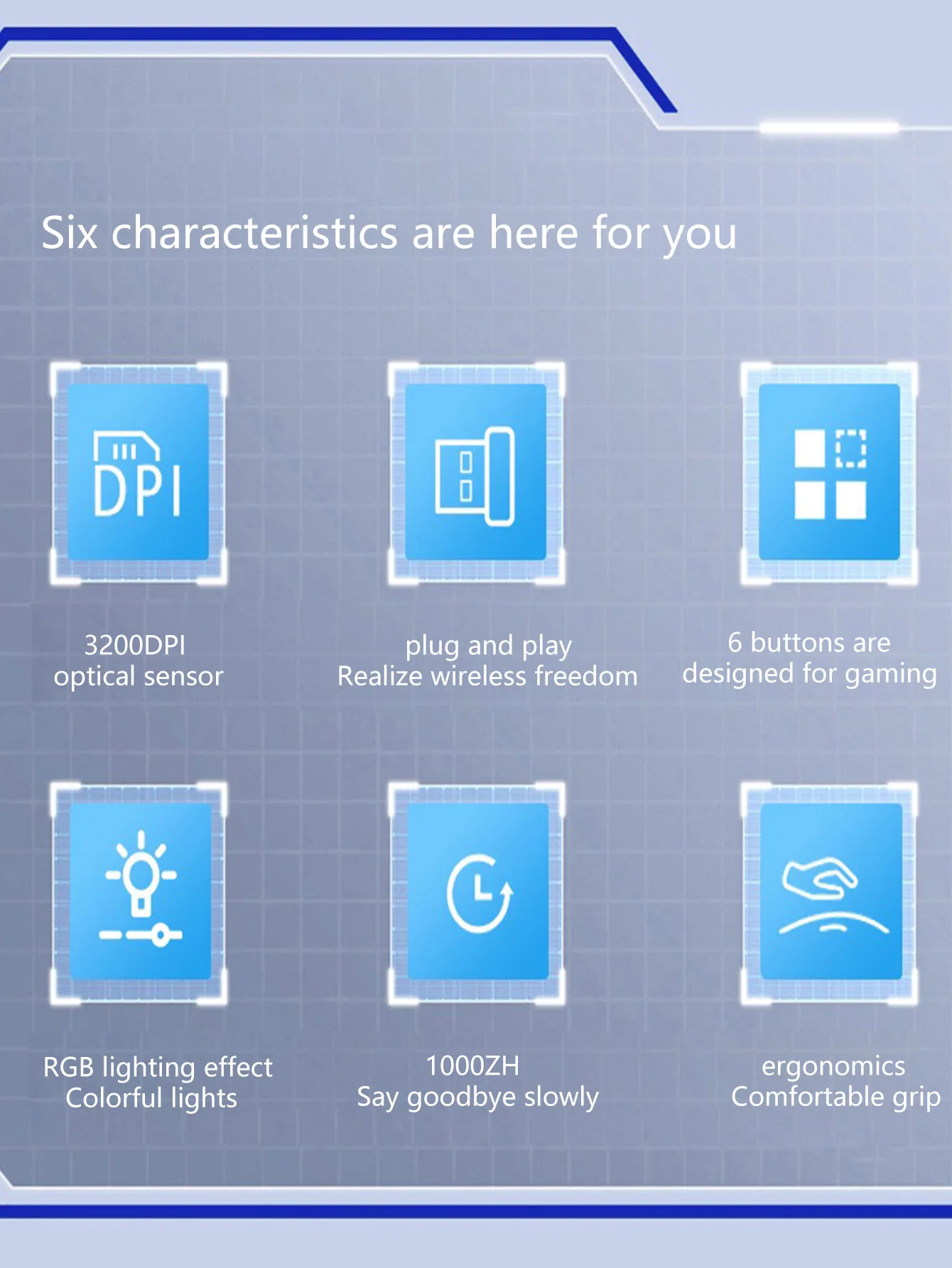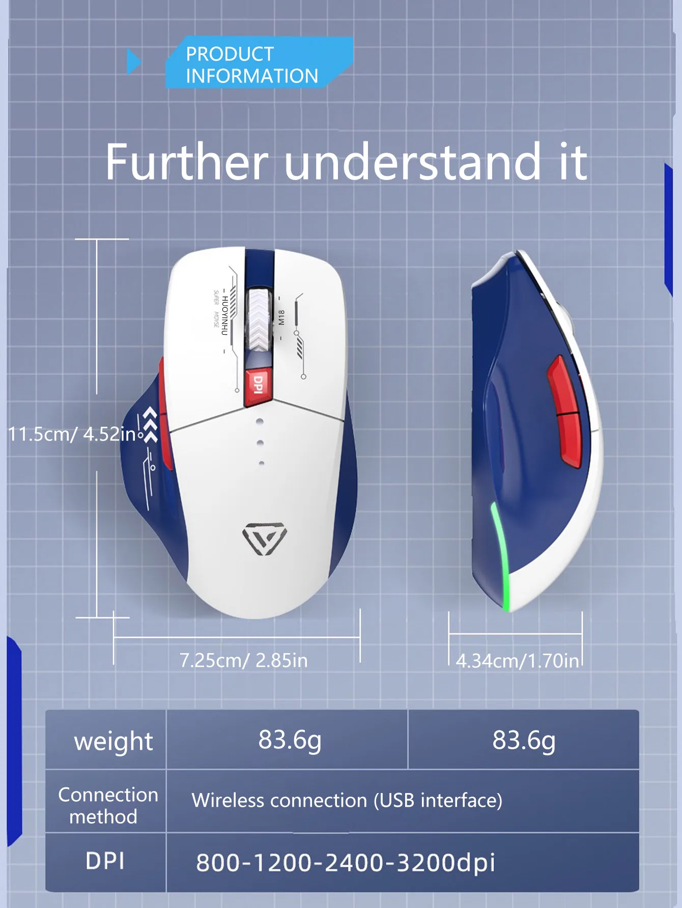ماوس لاسلكي مبهر، عمر بطارية طويل، ألعاب مكتبية عالية المظهر، ماوس عالمي قابل لإعادة الشحن