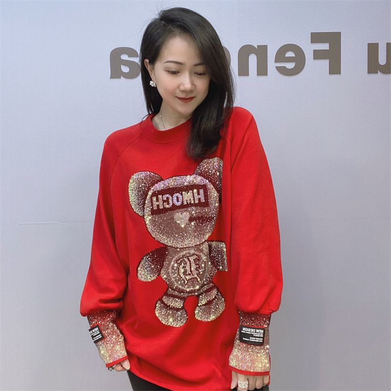 ملابس نسائية فضفاضة تي شيرت داخلي للنساء شتاء ساخن ماسي طويل الأكمام حجم كبير معطف مُثخن مغطى مشطًا تي شيرت