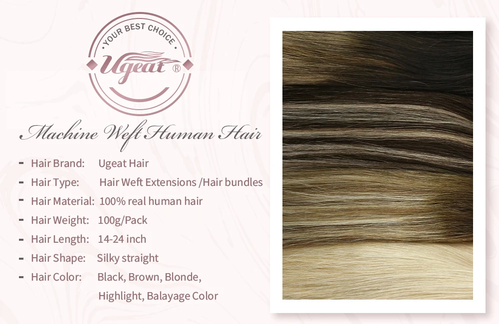 Ugeat لحمة شعر شعر بشري 100% شعر بشري حقيقي 14-24 "وصلات شعر ريمي ناعمة للنساء 80-105 جرام خياطة في وصلات لحمة الشعر