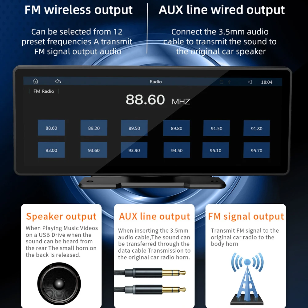 2.تنسيقات الوسائط المتعددة:يدعم راديو FM اللاسلكي هذا تنسيقات الوسائط المتعددة، بما في ذلك بطاقات SD ومحركات أقراص USB والملفات الصوتية وملفات الفيديو وملفات الصور.يمكنك بسهولة تشغيل الأغاني والأفلام والصور المفضلة لديك أثناء التنقل، مما يجعلها خيار ترفيهي رائع للرحلات الطويلة بالسيارة.