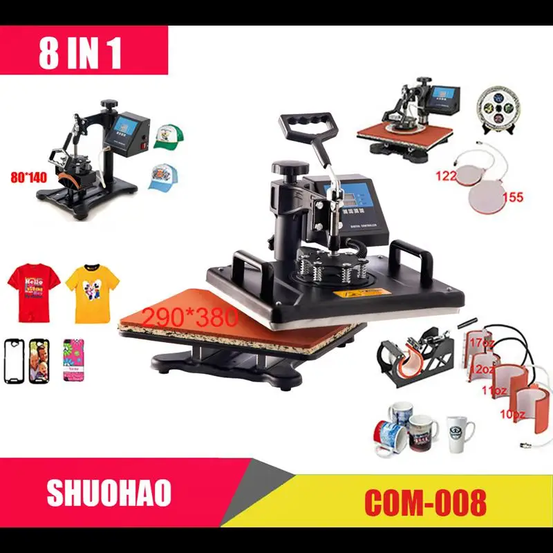 الولايات المتحدة/الاتحاد الأوروبي رخيصة 30*38 سنتيمتر 8 في 1 كومبو آلة الصحافة الحرارة طابعة التسامي 2D آلة نقل الحرارة لغطاء القدح لوحة بلايز CE