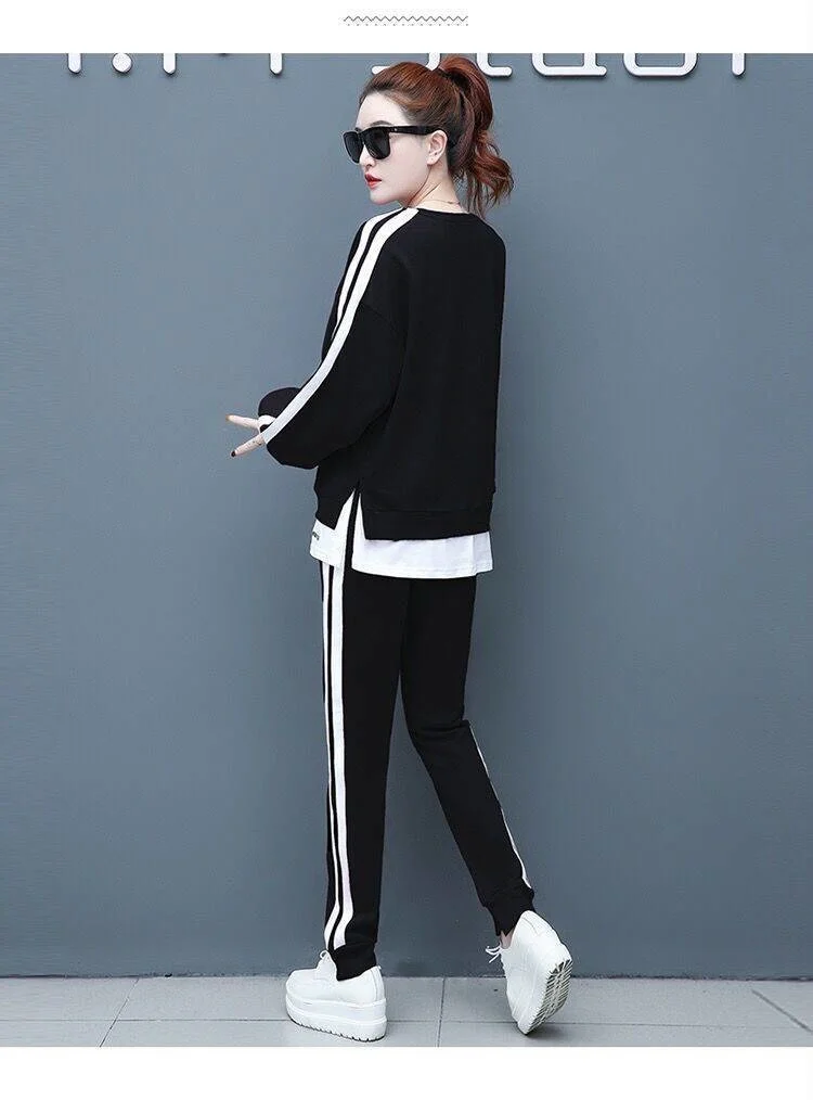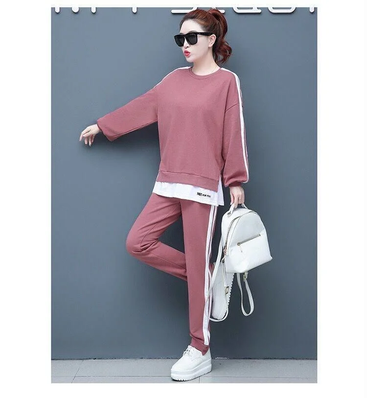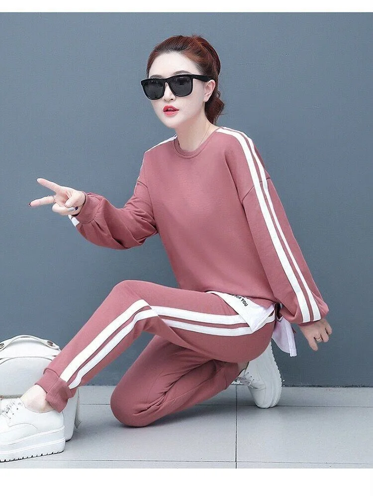 المرأة عادية بذلة رياضية 2025 ربيع الخريف ملابس جديدة موضة كم طويل المحاصيل القمم تي شيرت وسراويل قطعتين مجموعة للنساء