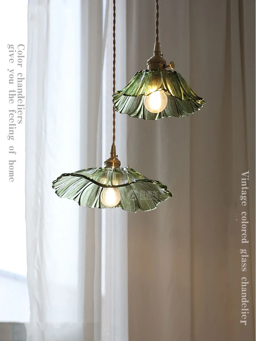 IWHD الشمال خمر النحاس الزجاج قلادة LED تركيبات إضاءة المدخل مطعم شرفة مقهى غرفة الطعام الحديثة مصباح معلق