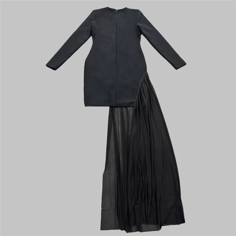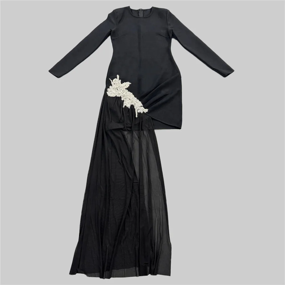 فساتين TWOTWINSTYLE متينة بقصة ضيقة مزينة للنساء برقبة دائرية وأكمام طويلة وخصر عالٍ فستان أنيق للسيدات KDR516201