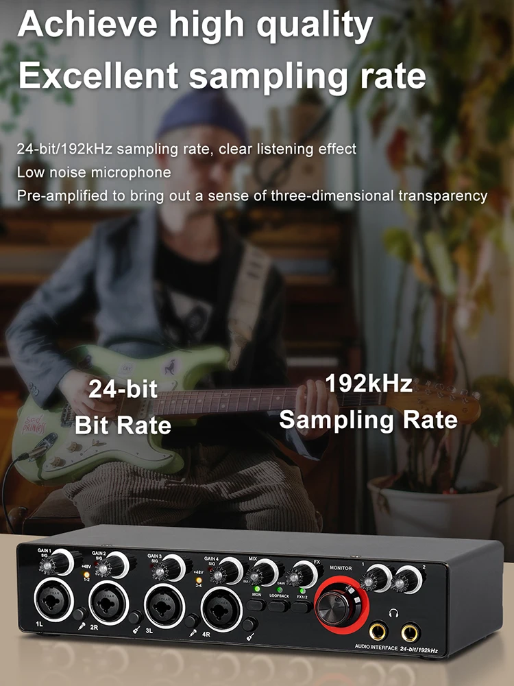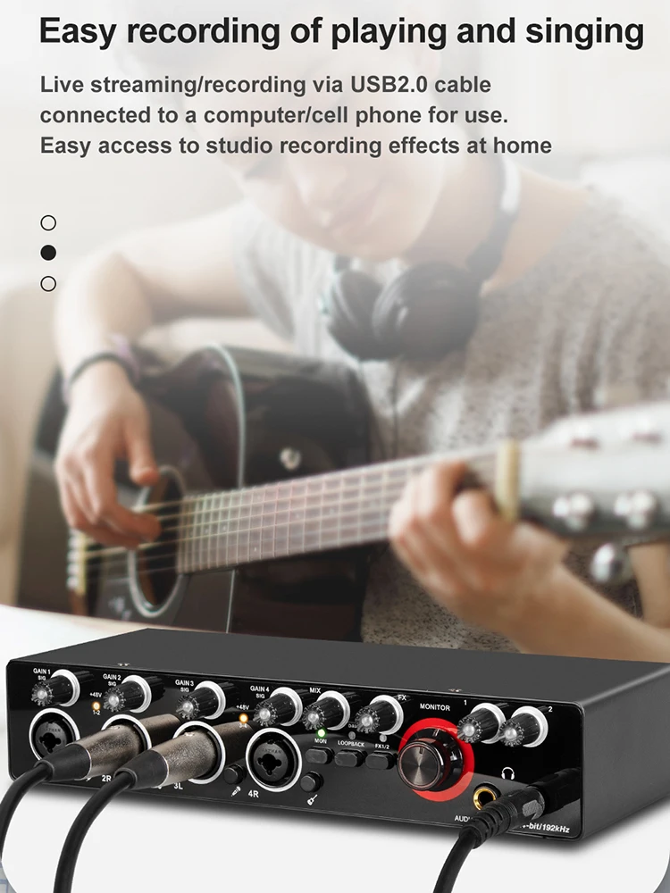 4 قناة المحمولة تسجيل كارت الصوت 192 كيلو هرتز 4 في 2-out USB2.0 كارت الصوت USB سائق الكمبيوتر مجانا للتسجيل المباشر الكاريوكي