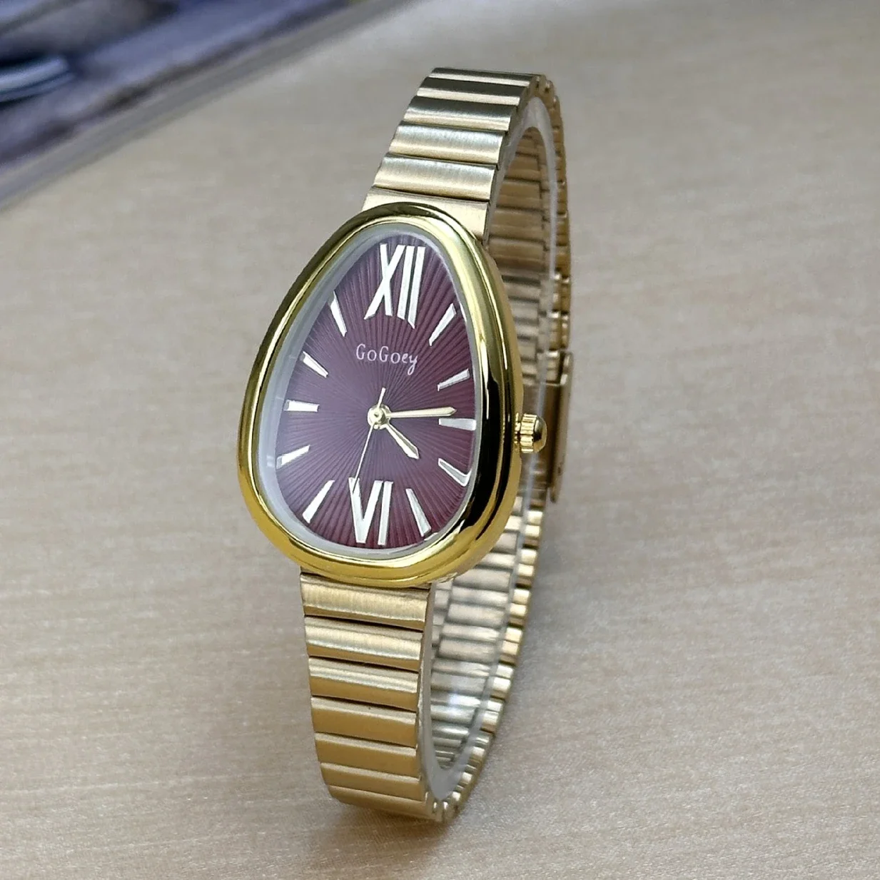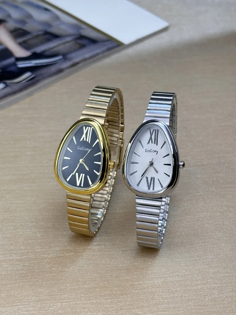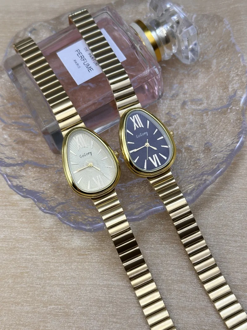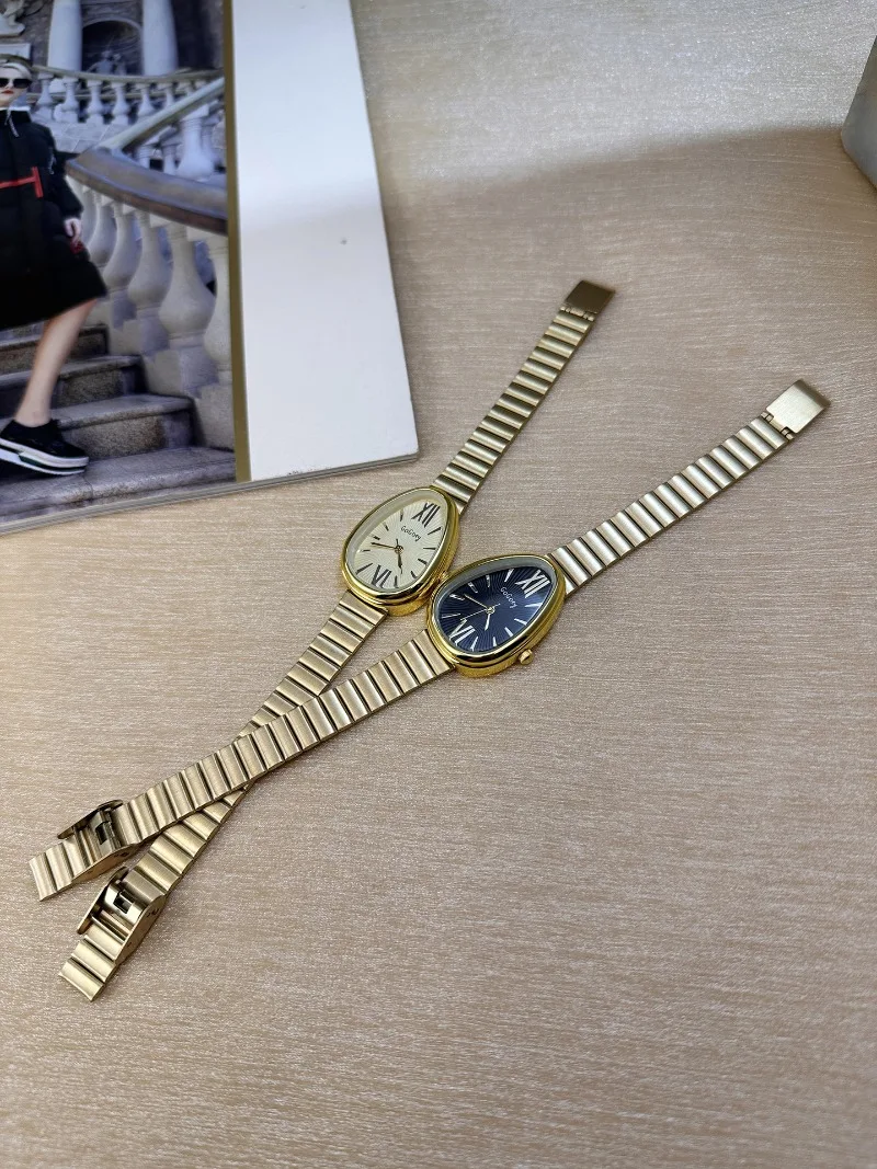 ساعات نسائية جديدة هدية ساعة رأس الأفعى للنساء موضة فاخرة حزام فولاذي كوارتز ساعات المعصم ساعة دروبشيبينغ