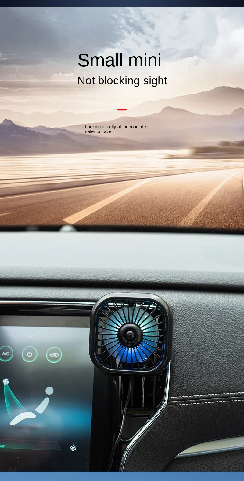 مروحة USB محمولة بمنفذ هواء السيارة، مبرد قوي منخفض الضوضاء ومبتكر، 3 سرعات ​ ​ مروحة سيارة صغيرة قابلة للتعديل مع ضوء لشاحنة CarSUV