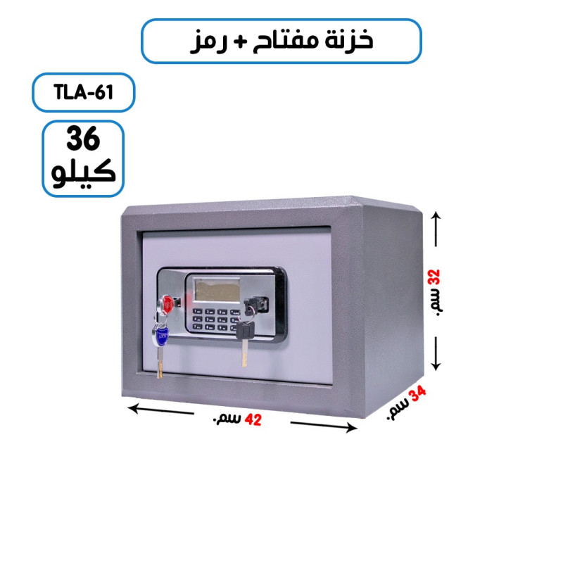 خزنة فولاذ أمنية مقاومة للحرائق مفتاح + رمز رمادي وزن 36 كيلو