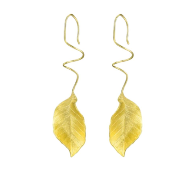 أقراط ورقة الشجر فضة 925 مصنوعة يدوياً مطلي ذهب