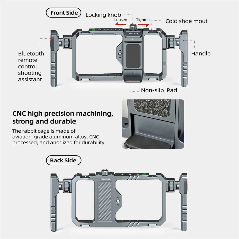 Crafted from full metal aluminium alloy, our phone cage is CNC machined and anodized for long-lasting durability