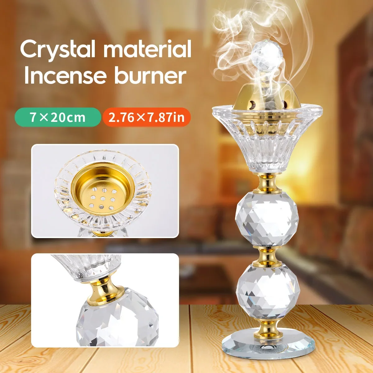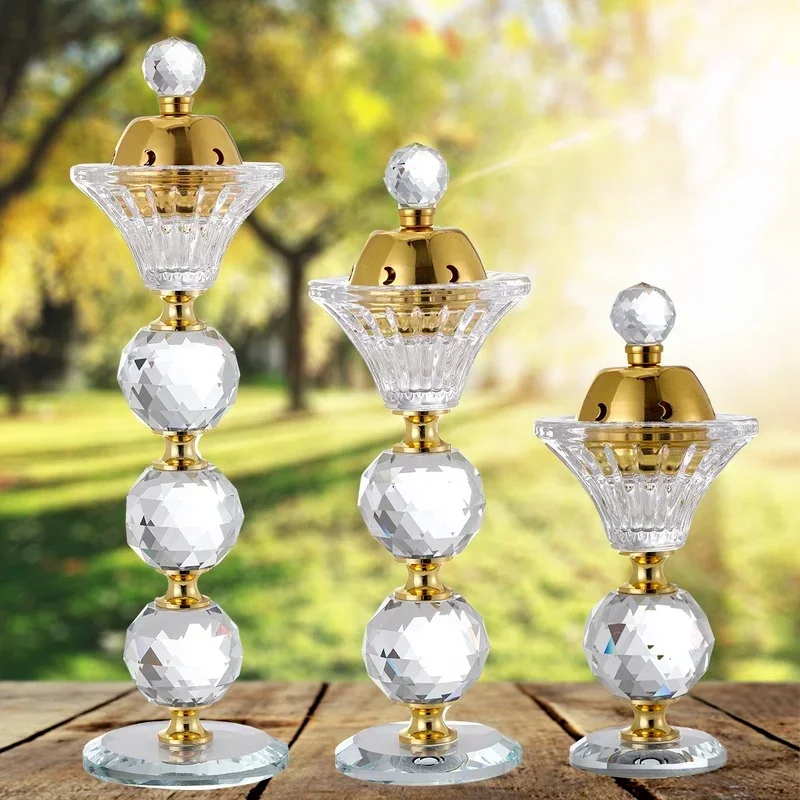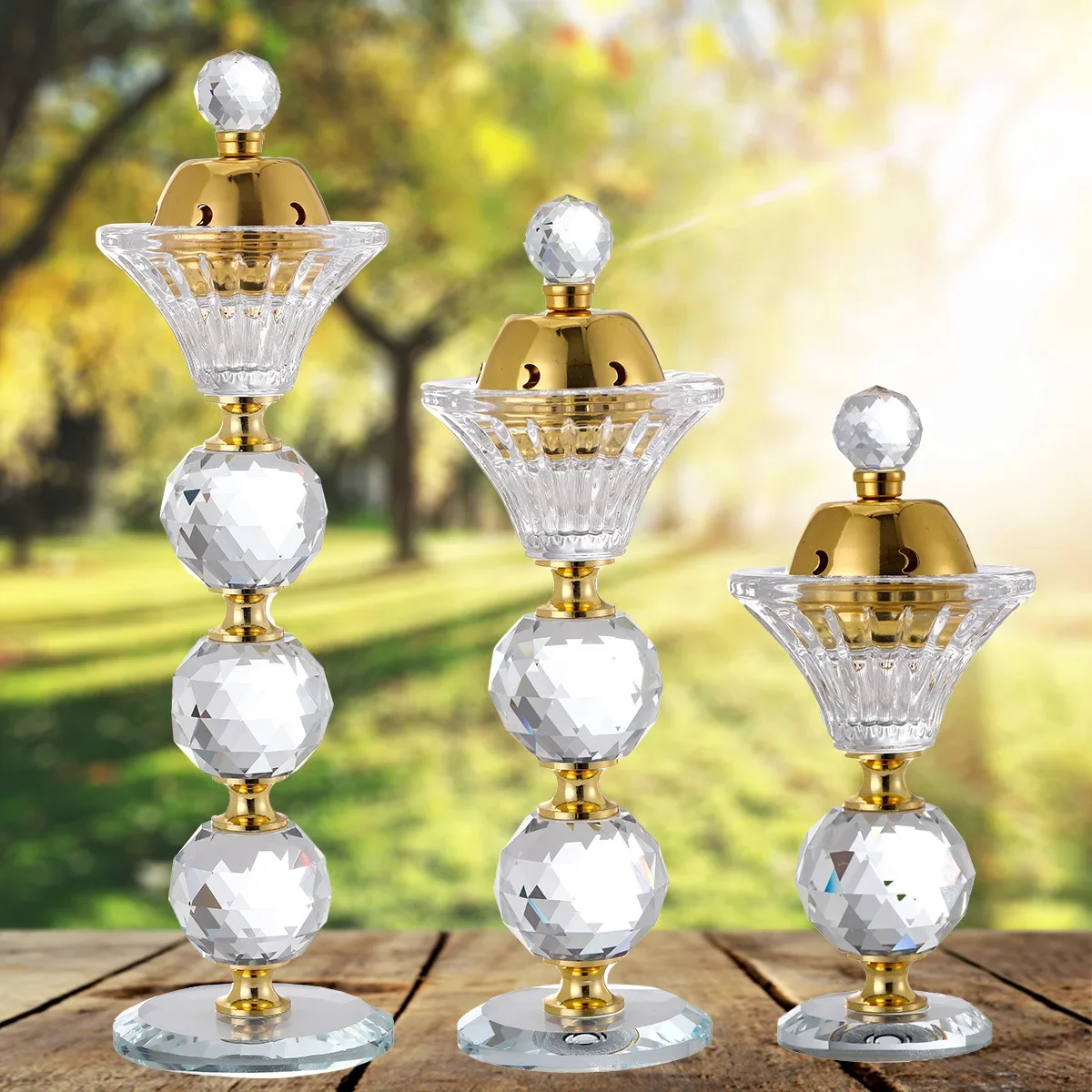 مبخرة عربية تقليدية - مبخرة كريستالية ومعدنية، مصباح زيت أساسي للباخور، ديكور منزلي رائع للعيد