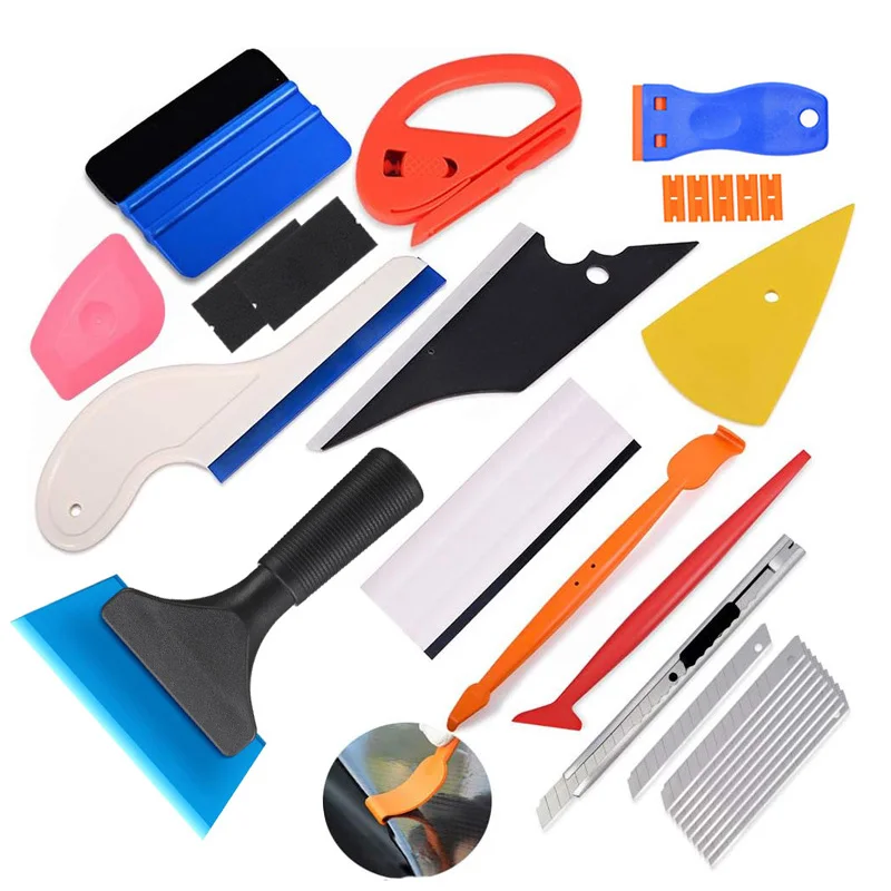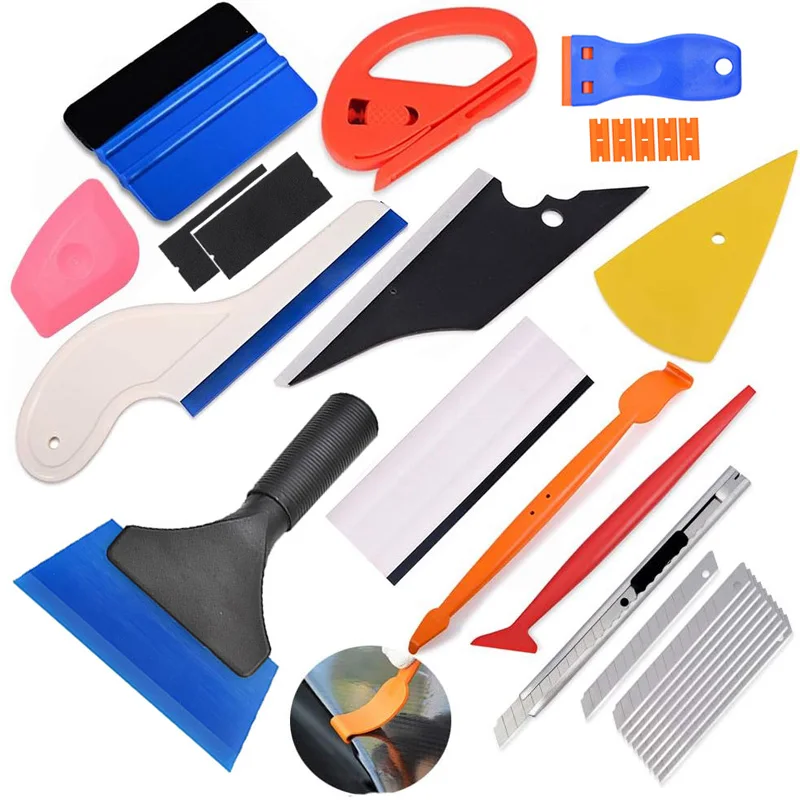 أدوات تظليل النوافذ، طقم تثبيت غشاء النافذة من الفينيل، ممسحة زاوية، عصا لف، سكين فائدة لقاطع الفينيل