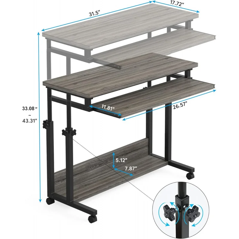 مكتب محمول قابل للتعديل لطاولة الكمبيوتر المحمول وسرير الأريكة مع صينية لوحة المفاتيح والمكتب المنزلي باللون الرمادي