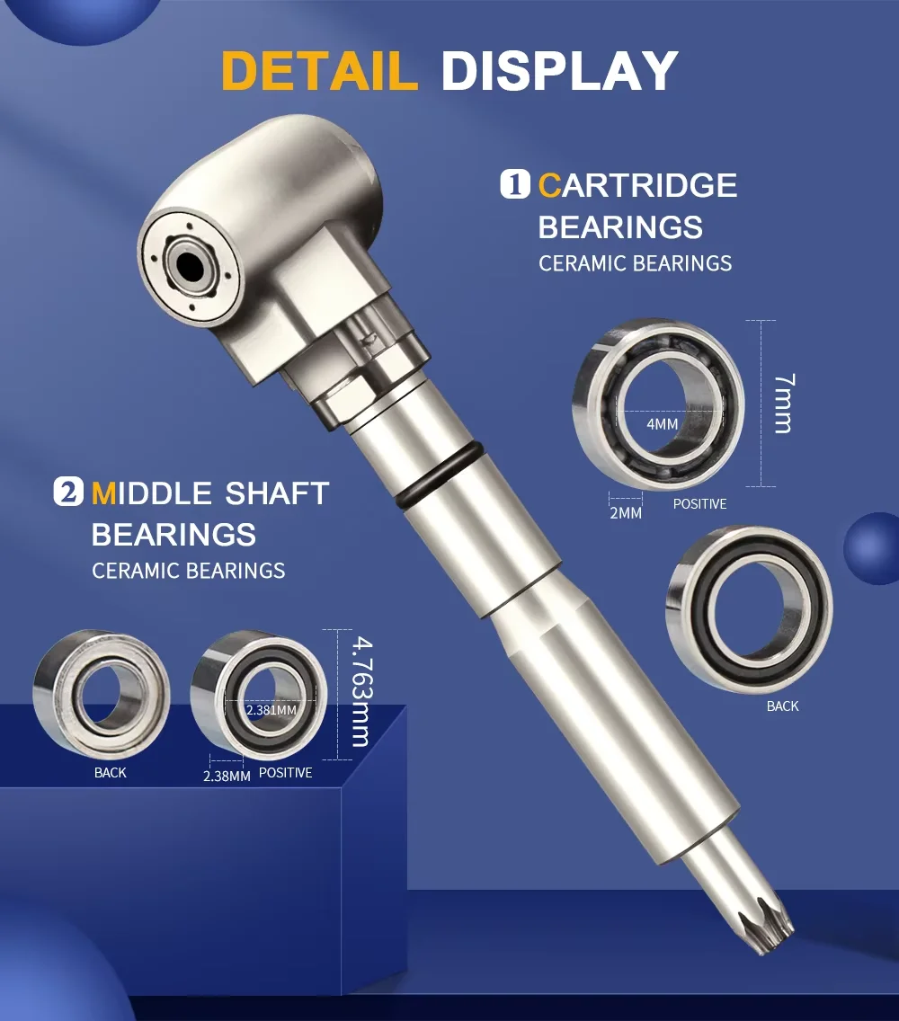 زاوية كونترا المقبض LED منخفضة السرعة هي أداة طب الأسنان مصممة لاستخدامها مع قبضة الأسنان لمجموعة متنوعة من إجراءات طب الأسنان.تتميز هذه الأداة بمصباح LED مدمج يضيء منطقة العلاج، مما يسمح برؤية ودقة أفضل أثناء الإجراءات.كما أن لديها نسبة تروس 1:1 أو 1.5 أو 1:4.2، مما يحدد سرعة وعزم دوران المقبض
