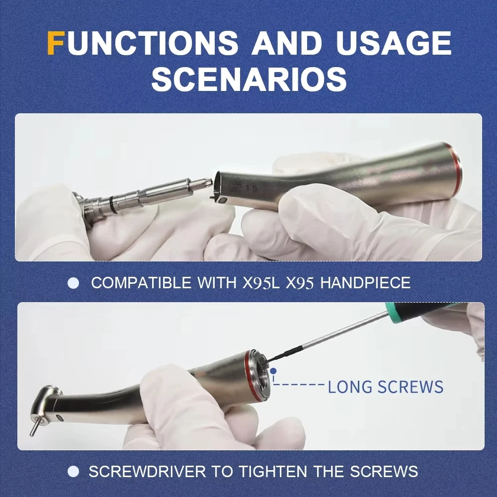 2: نسبة التروس: تحدد نسبة التروس للزاوية الكونترا سرعة وعزم دوران القبضة.يتم استخدام النسبة 1:1 لإجراءات طب الأسنان العامة، بينما يتم استخدام النسب 1:5 و1:4.2 لإجراءات أكثر تحديدًا تتطلب سرعات أعلى أو عزم دوران أكبر.