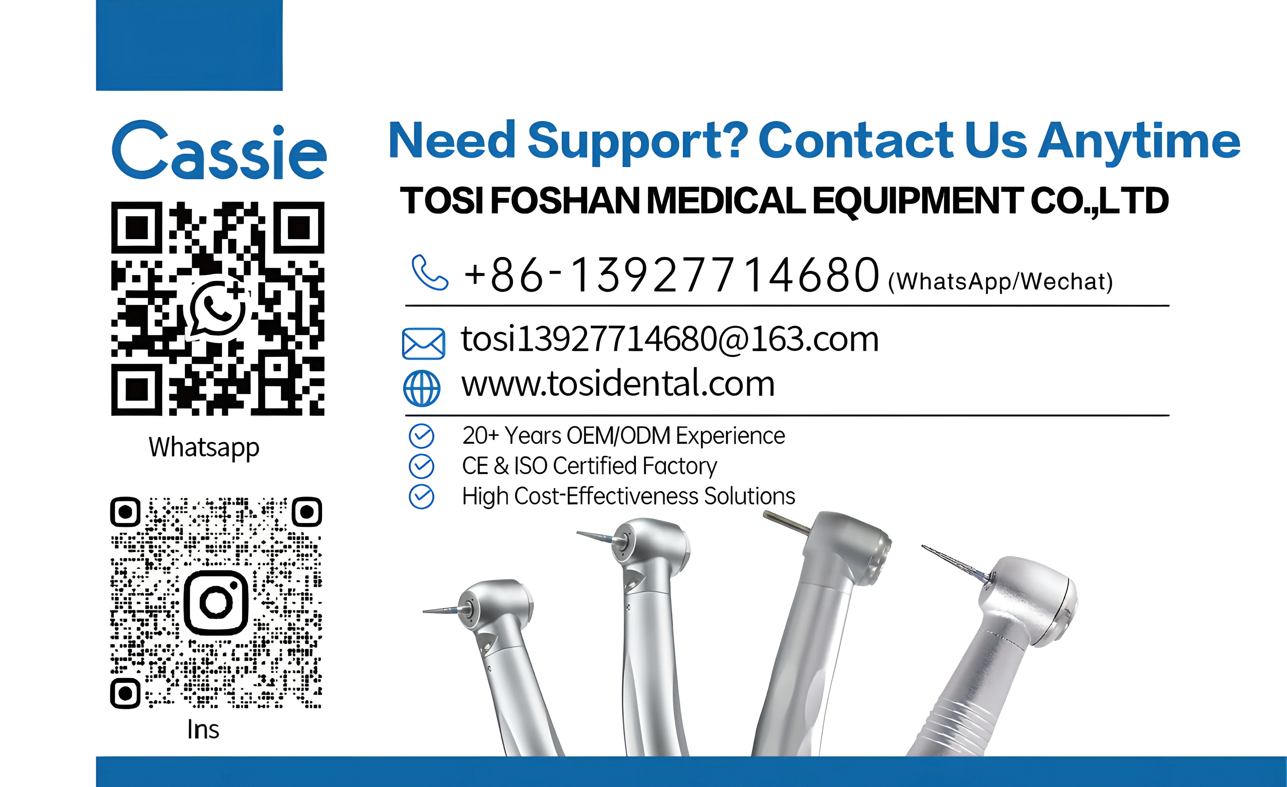 4: تصميم مريح: تم تصميم زاوية كونترا مع وضع بيئة العمل في الاعتبار، مما يجعلها مريحة للحمل والاستخدام لفترات طويلة من الوقت.كما أنها تتميز بعملية سلسة وهادئة، مما يساعد على تقليل الانزعاج لدى المريض أثناء الإجراءات.