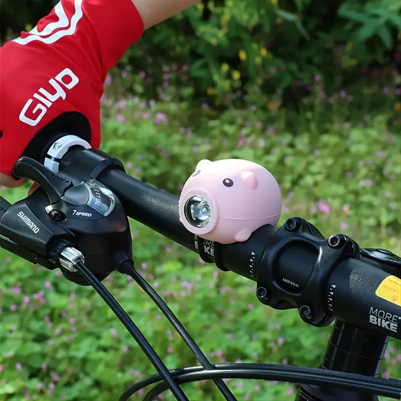 ضوء وإنذار لدراجة الخنزير الكرتونية للأطفال مع 3 أوضاع إضاءة، بوق إضاءة أمامي لطيف للدراجة، ضوء تحذير لمقود الدراجة