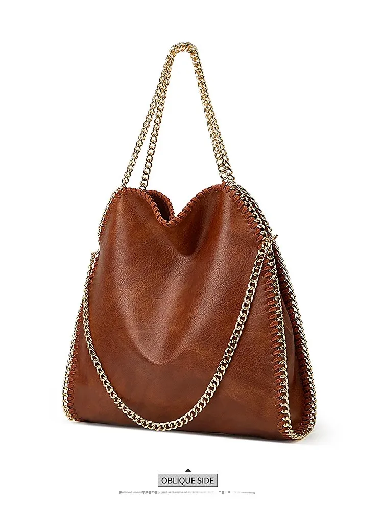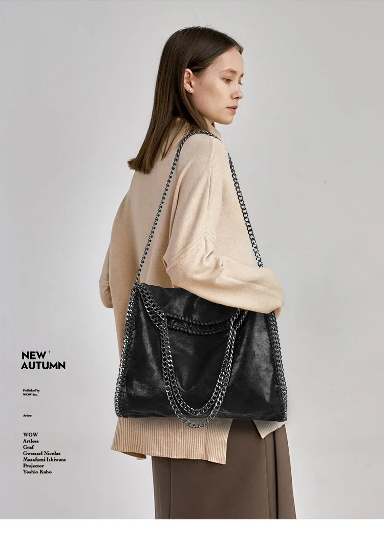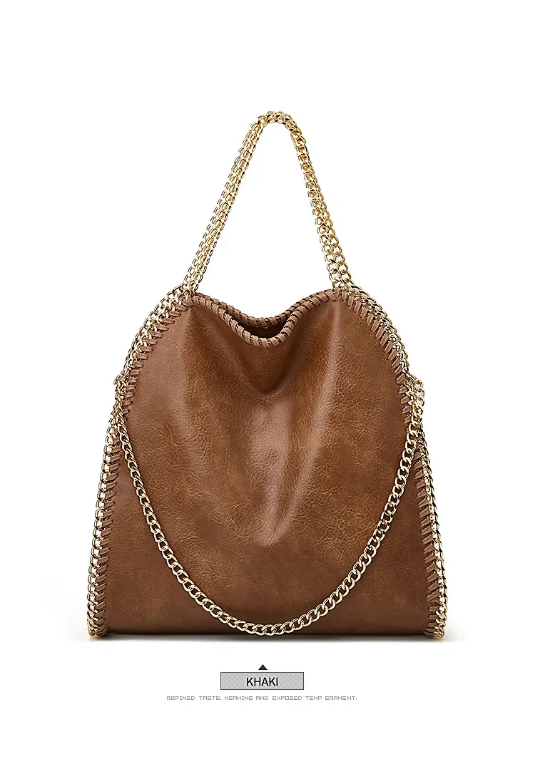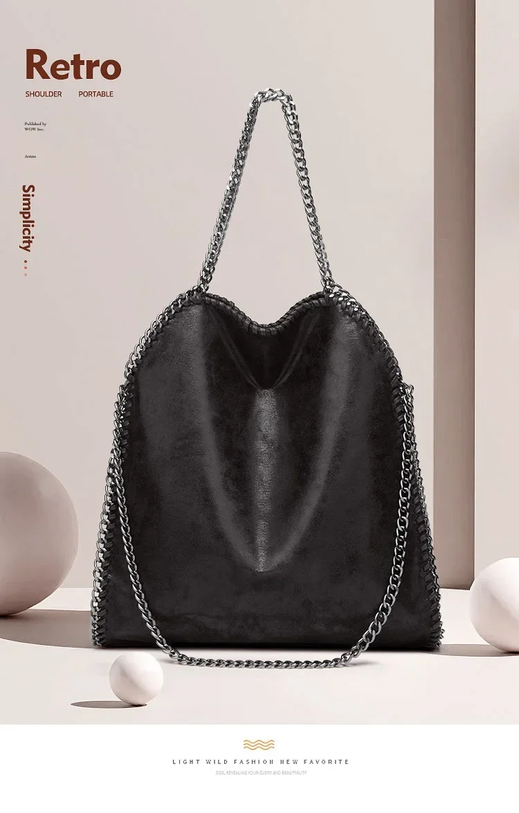 2024 New Women's Bag Stella Large Chain Handbag Single Shoulder Fashionable European Style Polyester Fiber Women's Bag