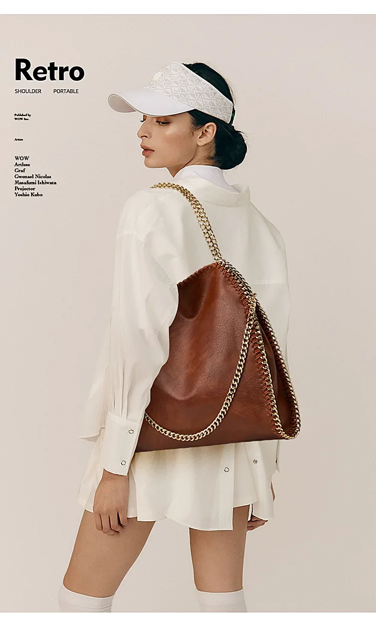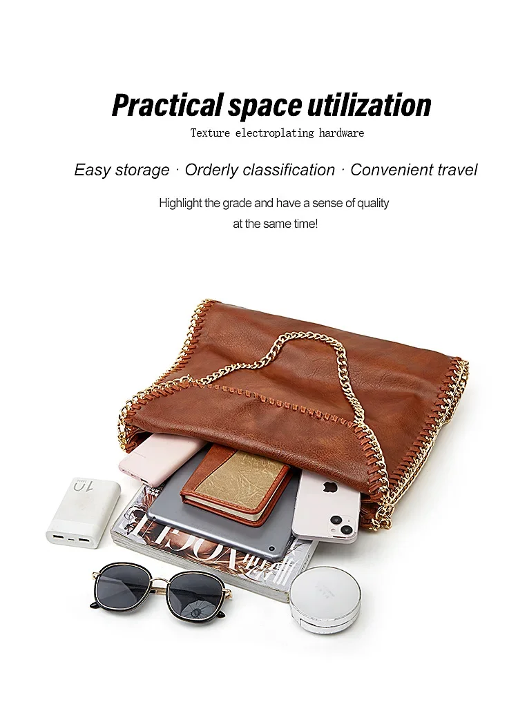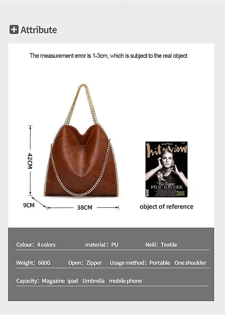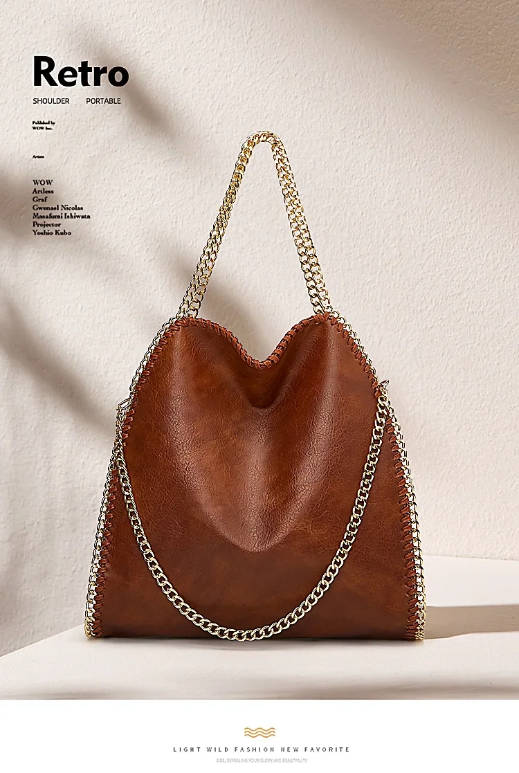 2024 New Women's Bag Stella Large Chain Handbag Single Shoulder Fashionable European Style Polyester Fiber Women's Bag