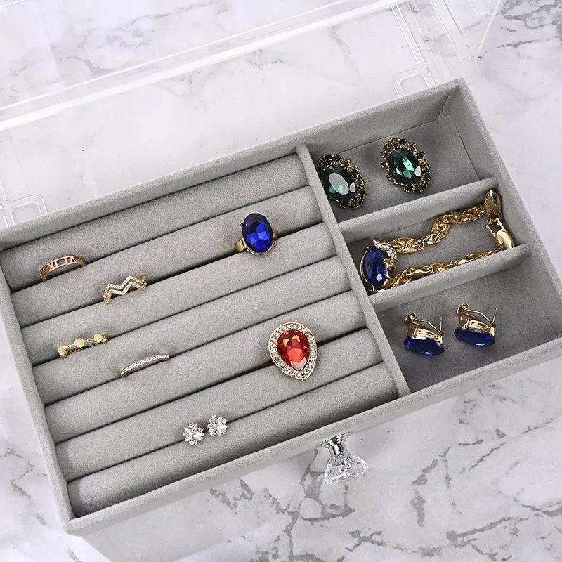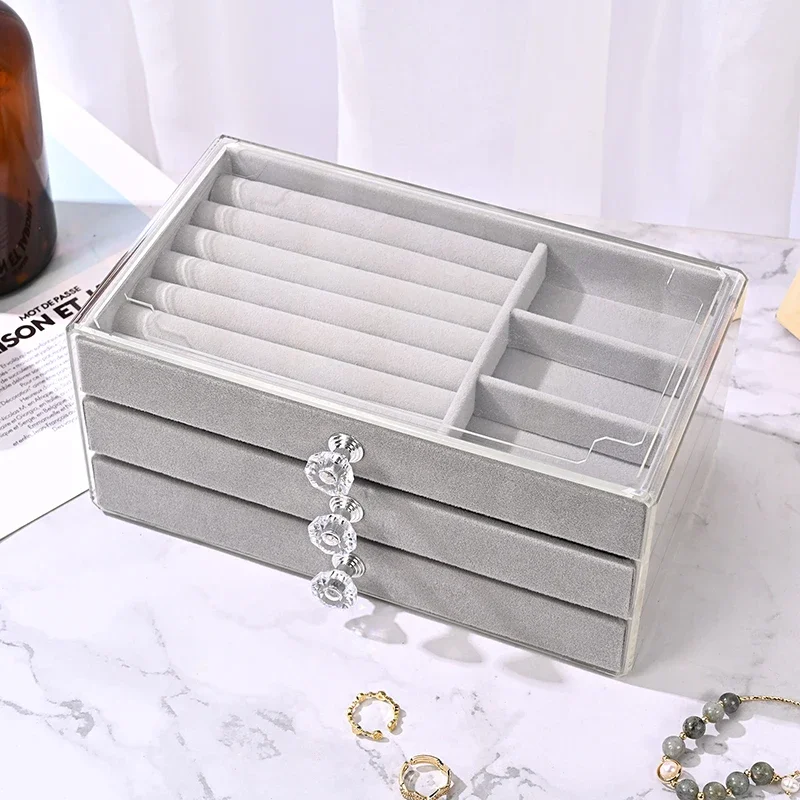 2025 صندوق مجوهرات أكريليك صندوق حلية مجوهرات شفاف ثلاث طبقات درج صندوق تخزين المجوهرات صينية حلقة فلنلت