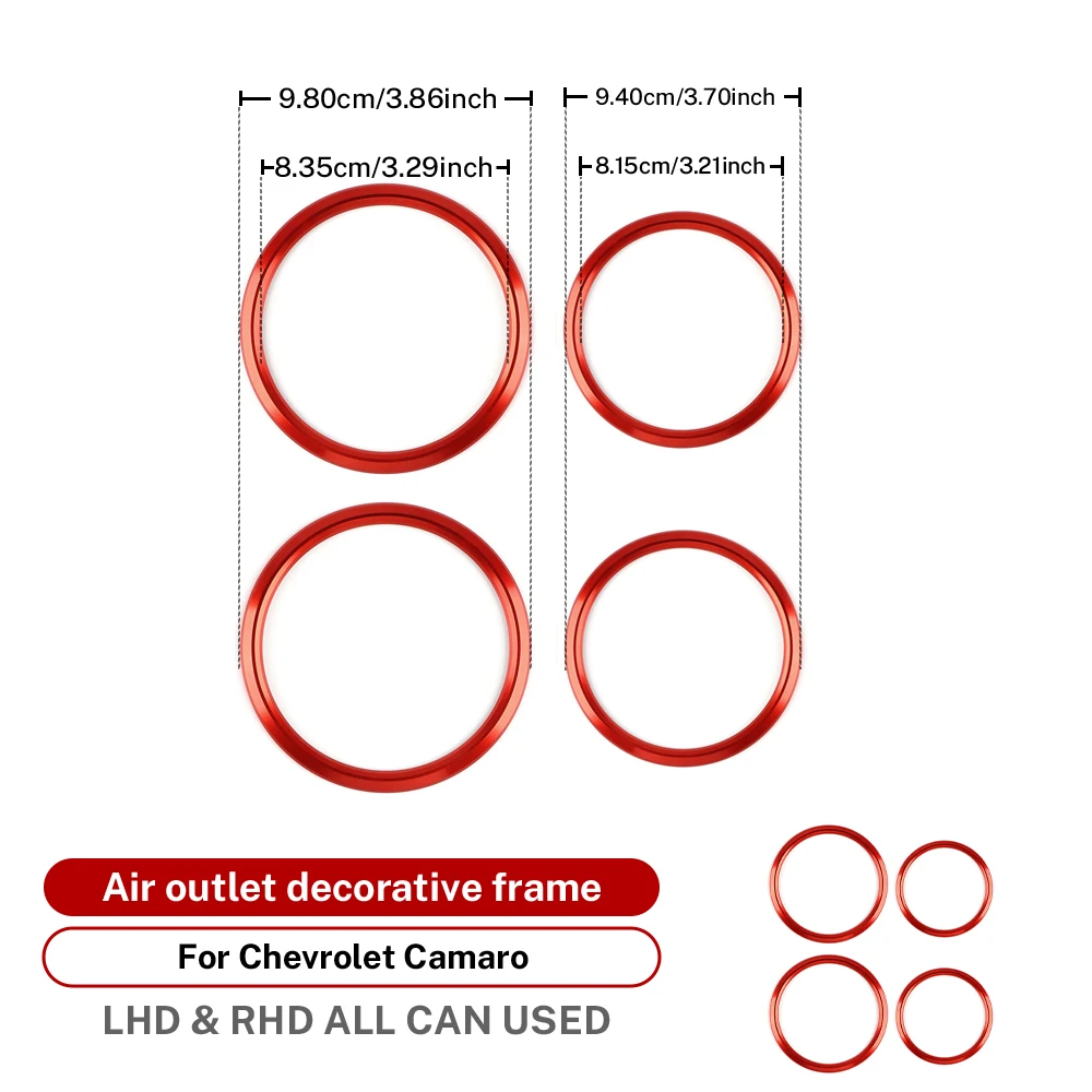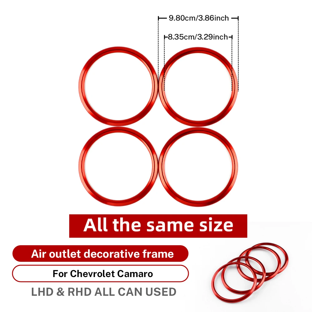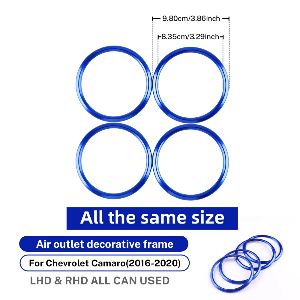 4 قطعة خواتم لشروليه كامارو 2016 2017 2018 2019 2020 2021 2022 2023 اكسسوارات السيارات سبائك الألومنيوم مخرج التيار المتناوب تنفيس ملصق